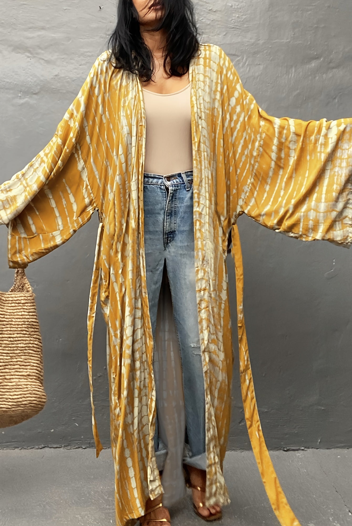 La plupart des kimonos d’été sont fabriqués dans des matières fines qui nécessitent un entretien doux. Lavez-les en machine à basse température ou à la main avec une lessive légère. Évitez le sèche-linge, et préférez un séchage à plat ou suspendu à l’air libre pour préserver la forme.
