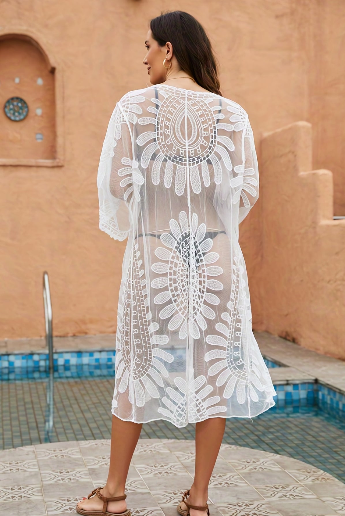 Le kimono est parfait pour passer de la serviette au bar de plage sans avoir à se changer. Facile à enfiler et à retirer, il sèche vite et protège légèrement des rayons du soleil. Privilégiez les tissus respirants comme le coton ou la viscose, qui évitent la surchauffe.