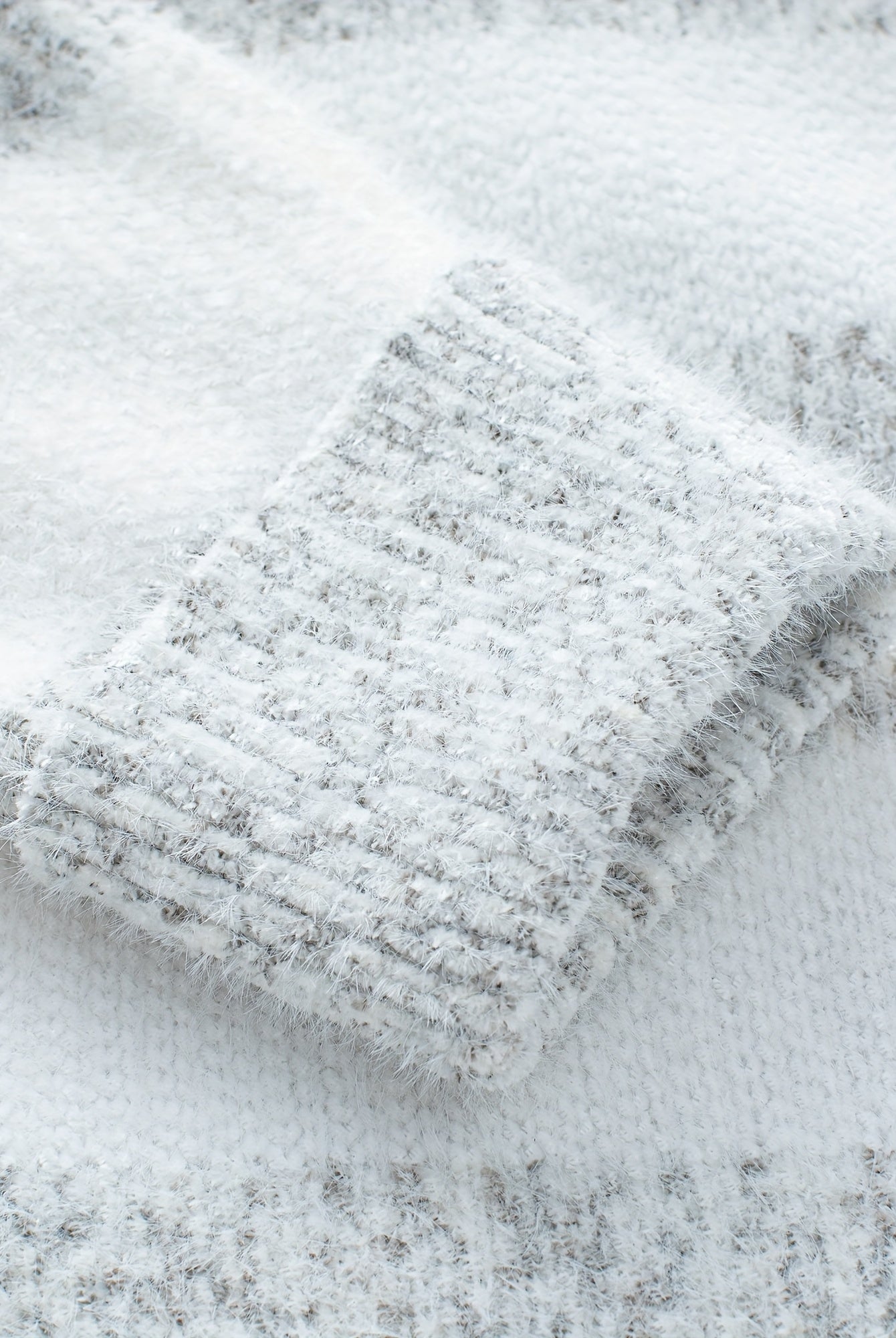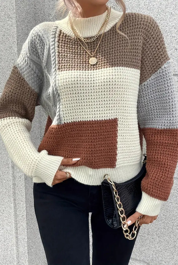 Un pull long ou oversize combiné à des chaussettes visibles crée une harmonieuse alternance de textures : la maille dense du haut contraste avec la douceur moelleuse du bas. On obtient une silhouette équilibrée qui semble à la fois décontractée et bien pensée.