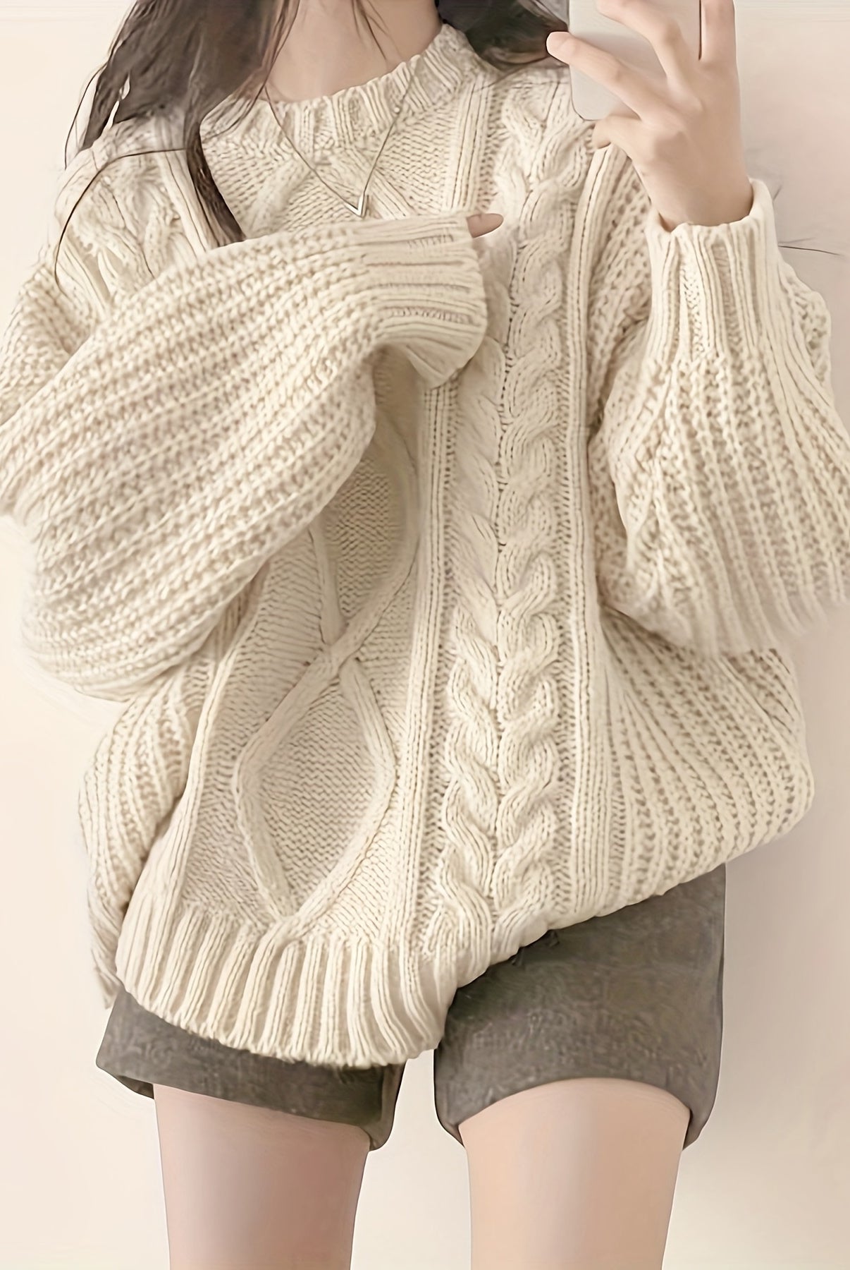 Le choix du pull est essentiel : les modèles oversize en grosse maille ou les pulls côtelés structurés sont idéaux pour créer une allure cosy. Ils offrent un port généreux qui enveloppe la silhouette, tout en restant élégants grâce à des détails comme des cols roulés, des manches tombantes ou des torsades raffinées.