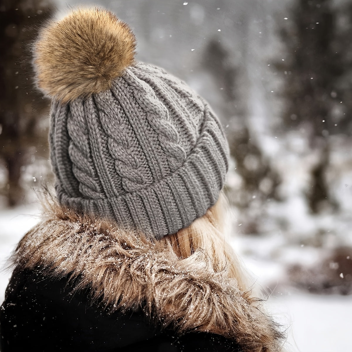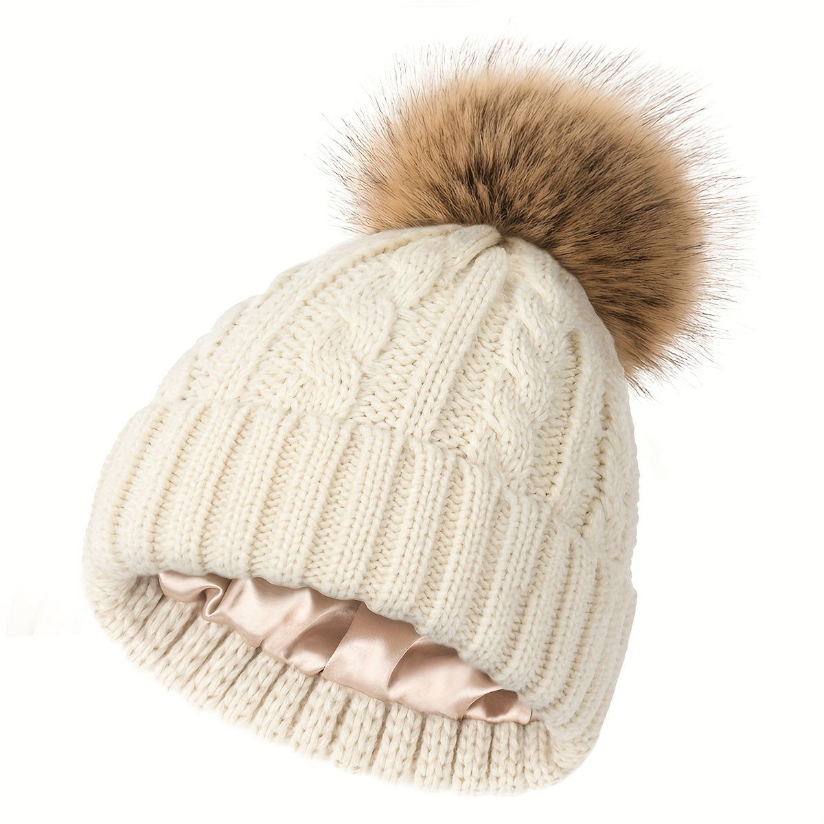 Bonnet femme hiver avec pompon et intérieur soyeux