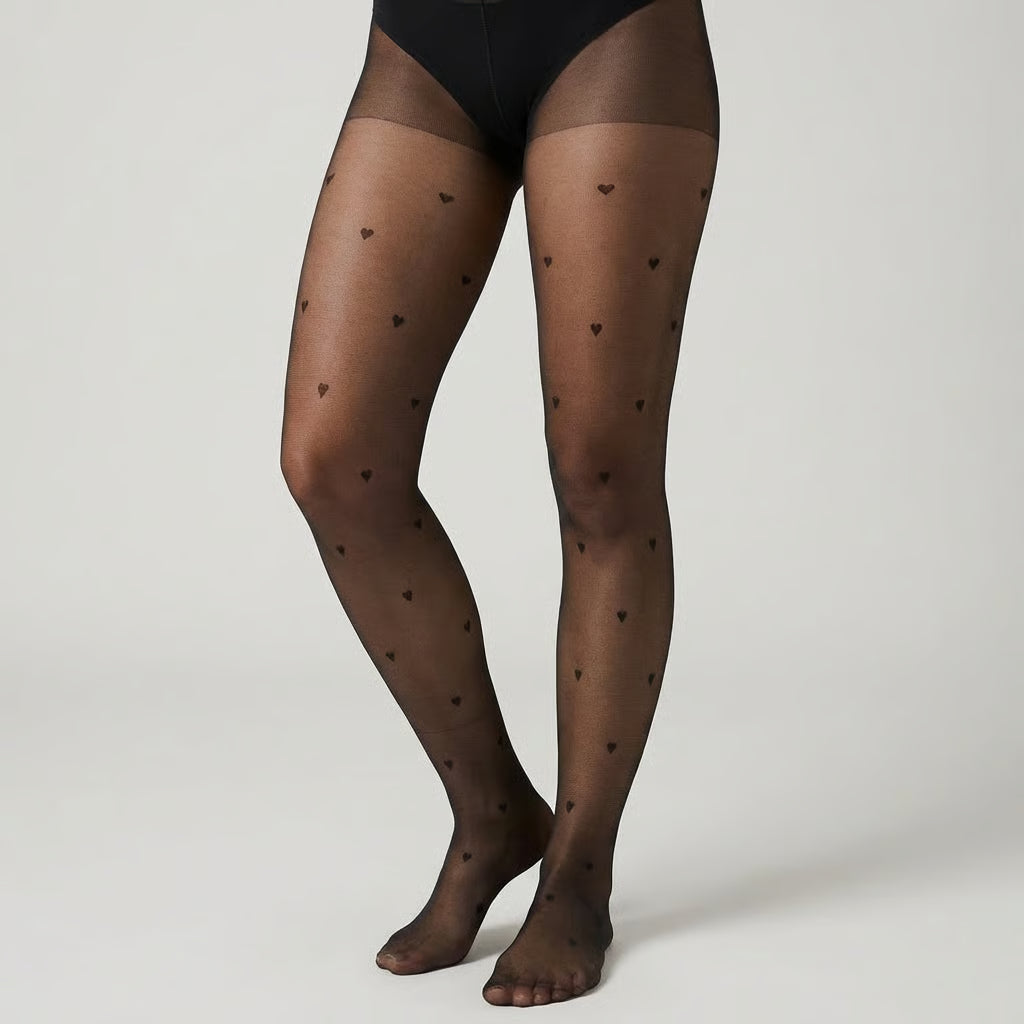 Collant Fantaisie Noir à Petits Cœurs (Taille unique)