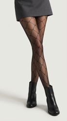 Élégant et résolument féminin, ce collant fantaisie noir se distingue par son motif losanges finement dessiné sur l’ensemble de la jambe. Son voile léger et légèrement transparent met en valeur la silhouette avec subtilité, tout en apportant une touche graphique et moderne à vos tenues.