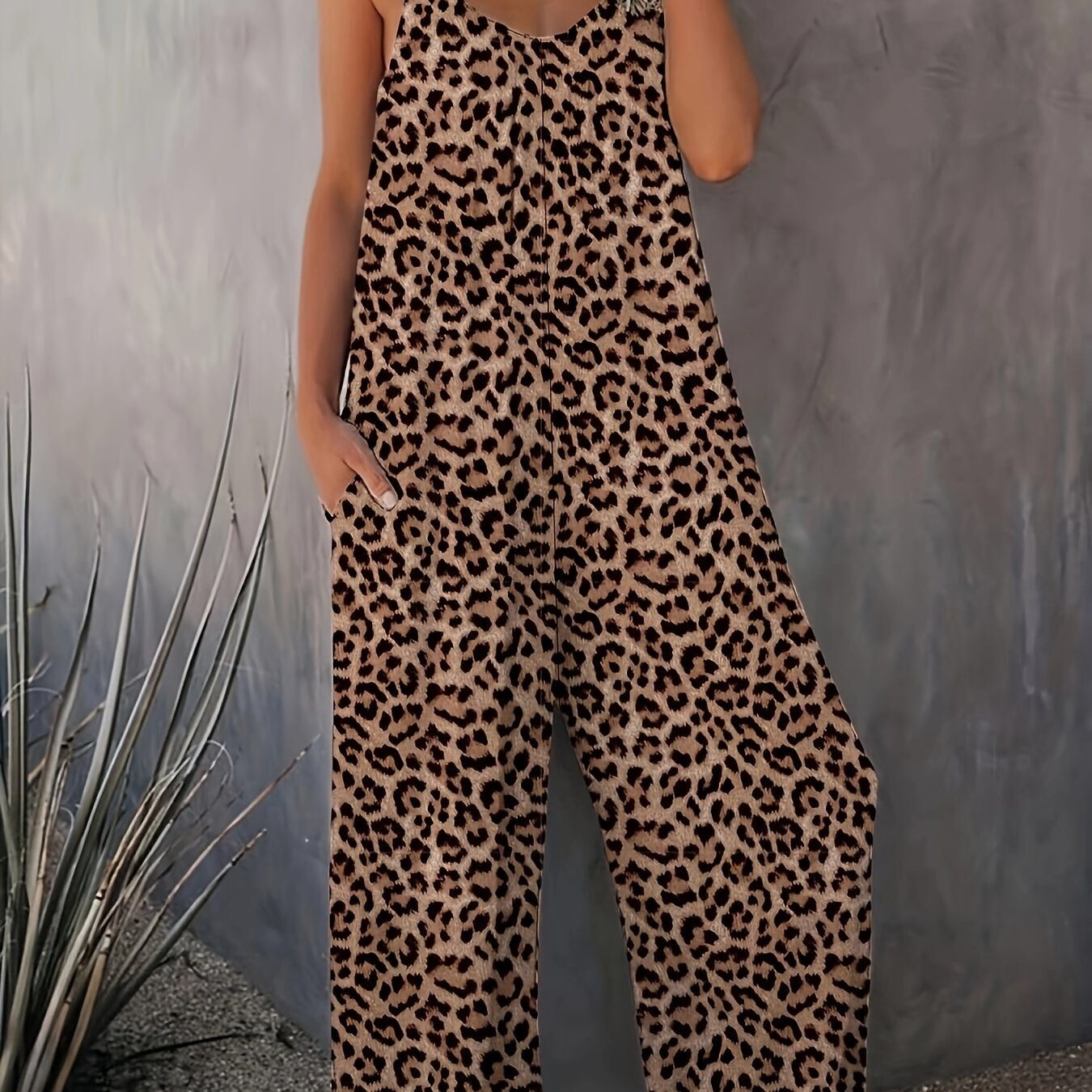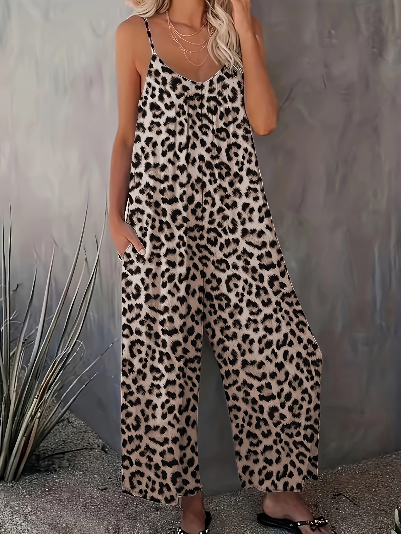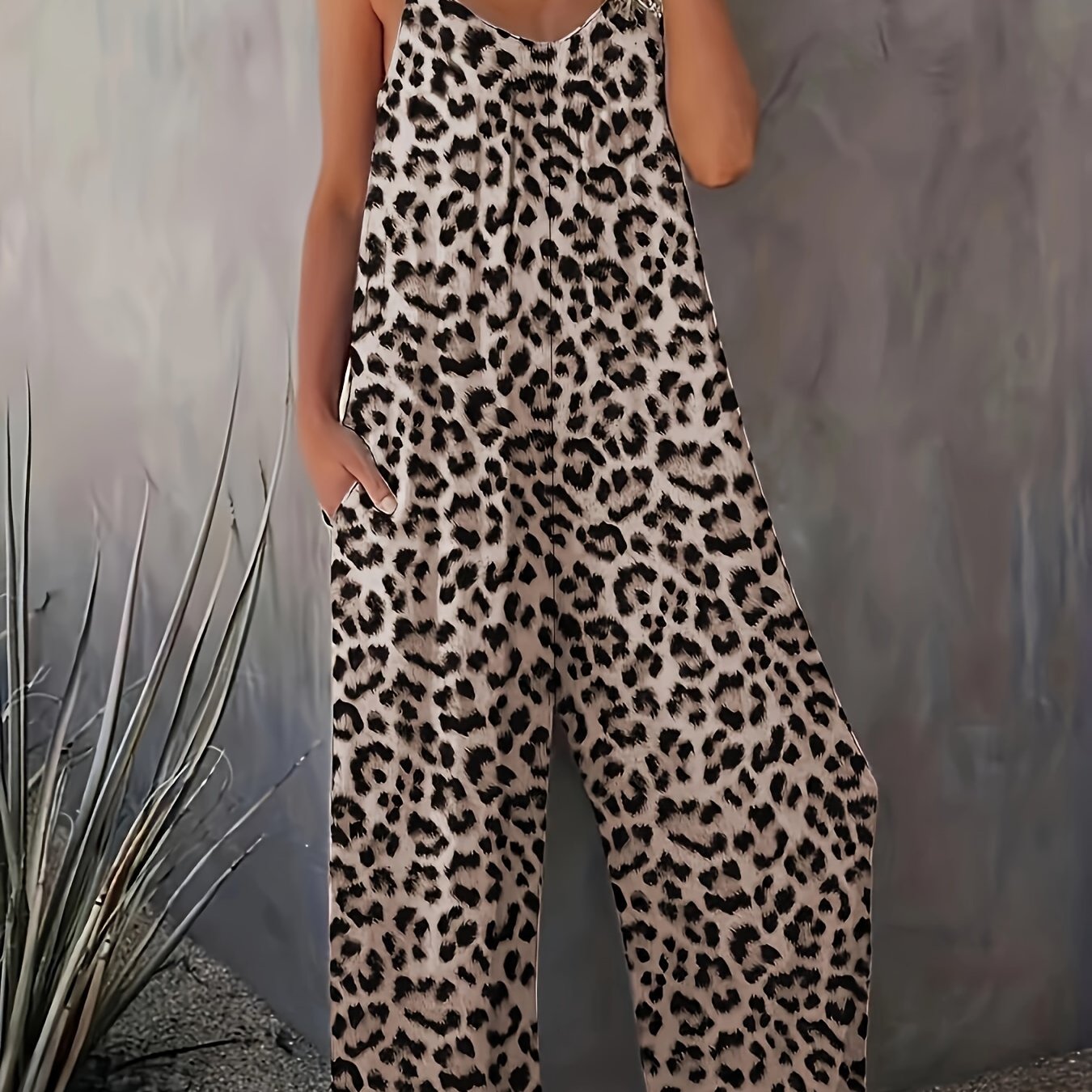Combinaison fluide femme à imprimé léopard et bretelles fines