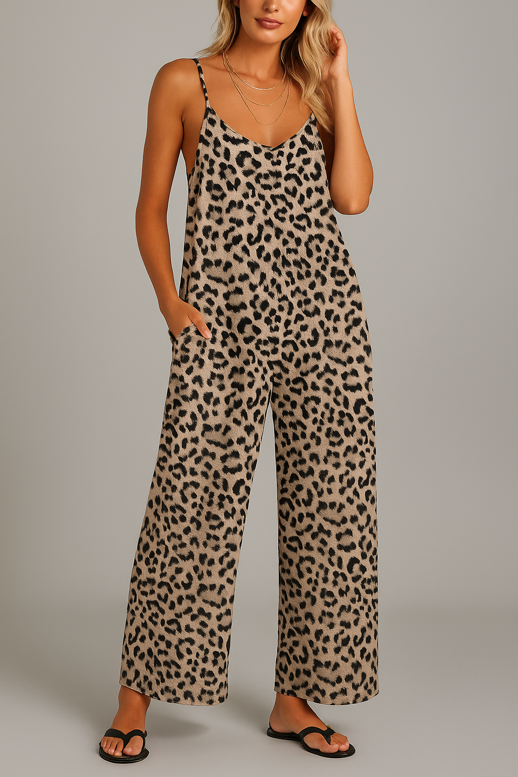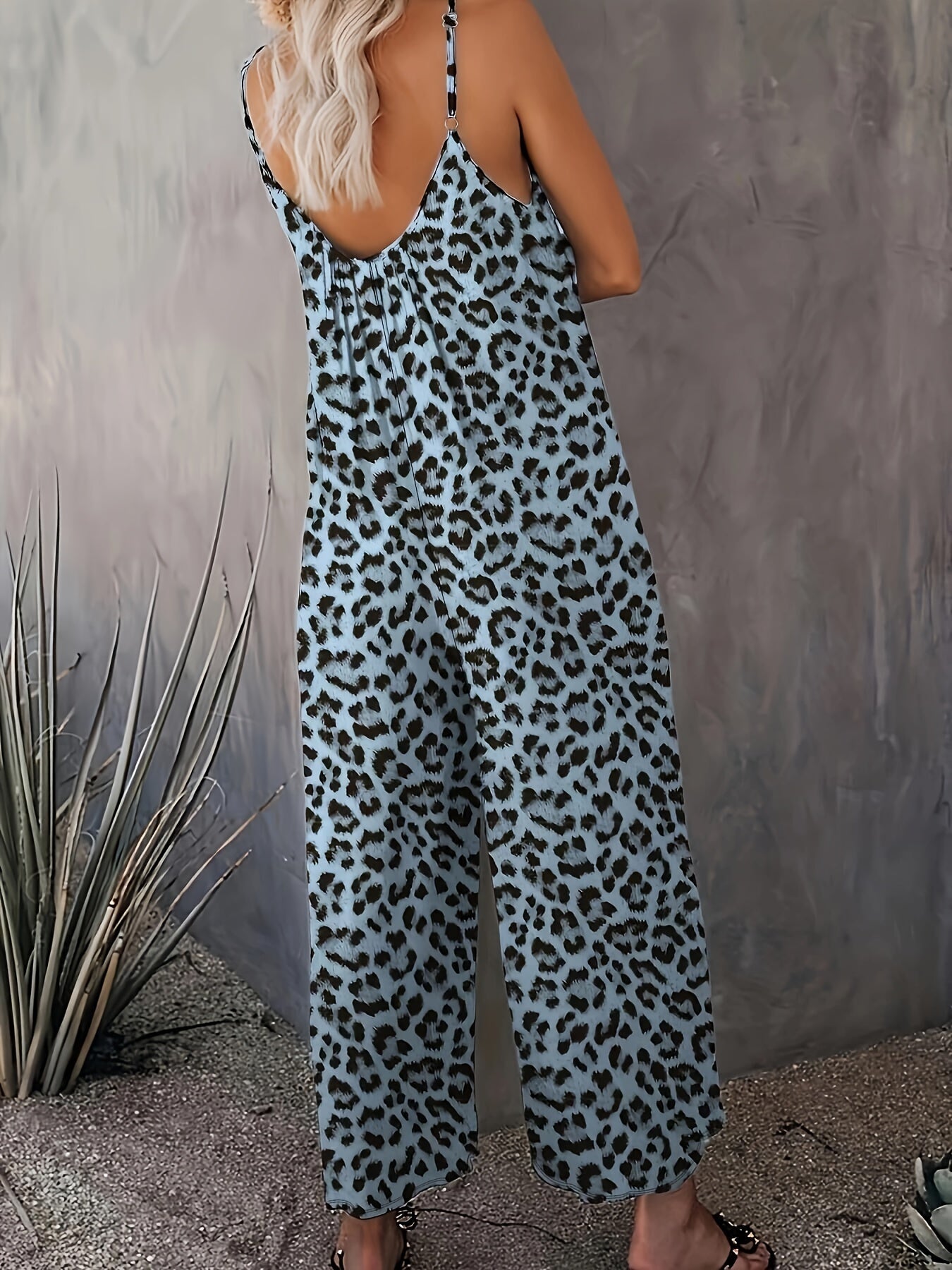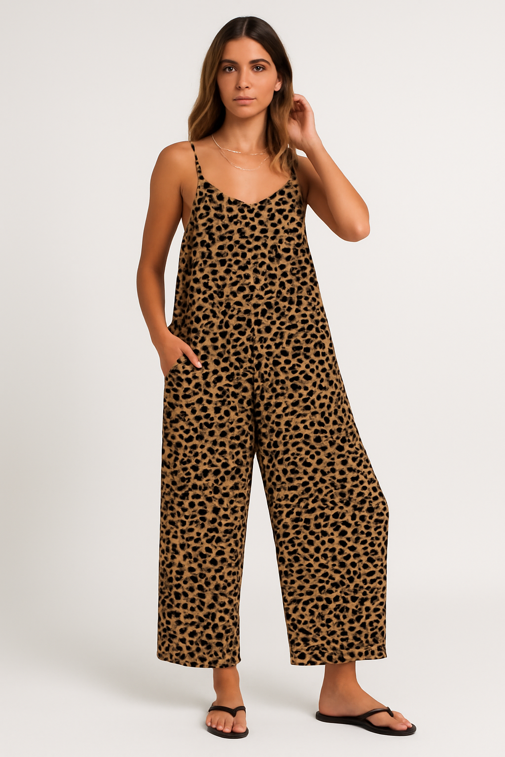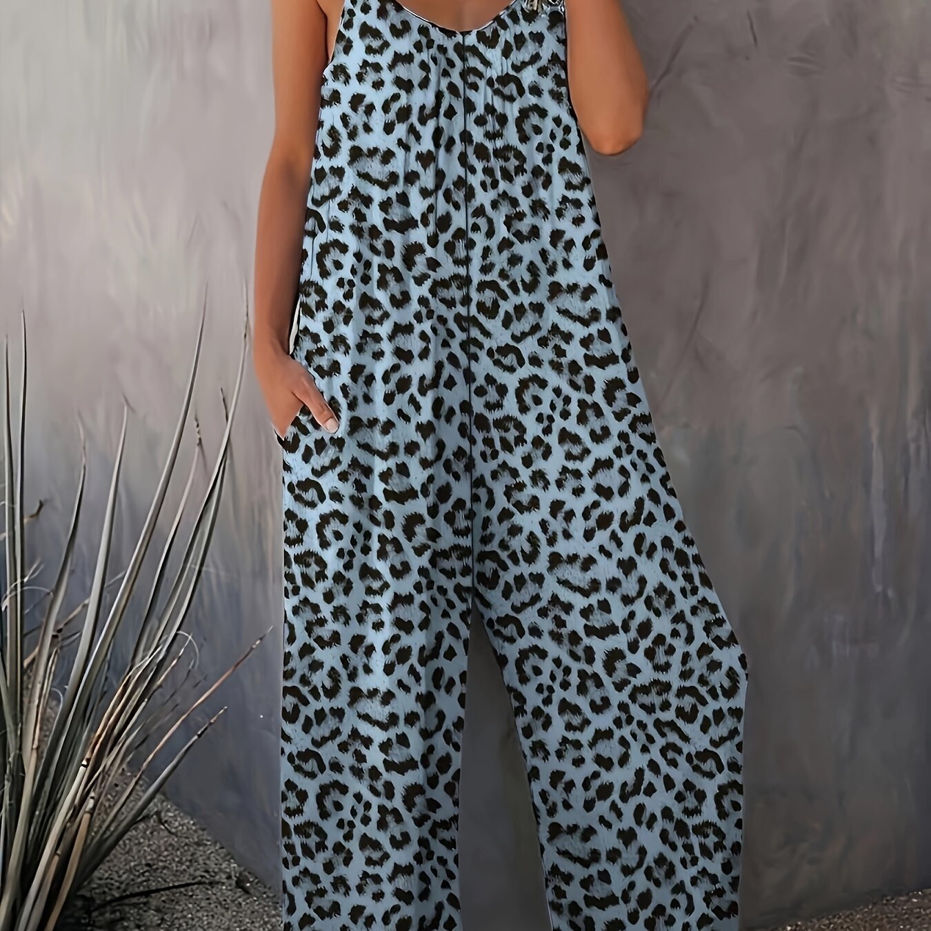 Combinaison fluide femme à imprimé léopard et bretelles fines