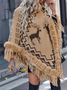 • Détails : franges décoratives, col duveteux, motifs rennes.
