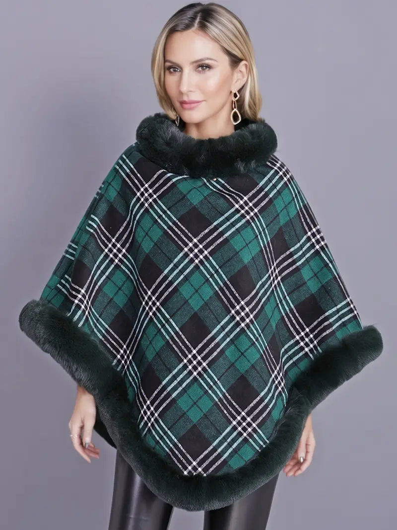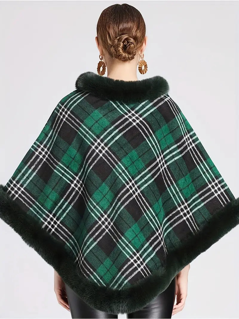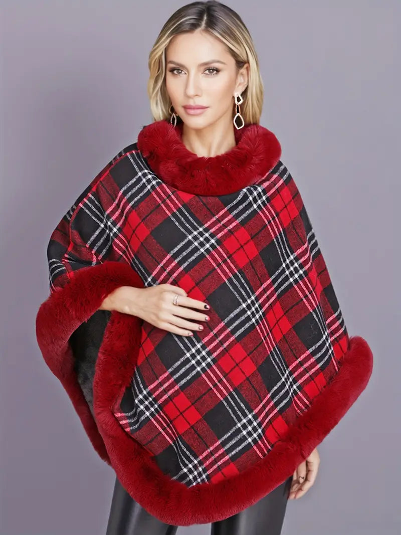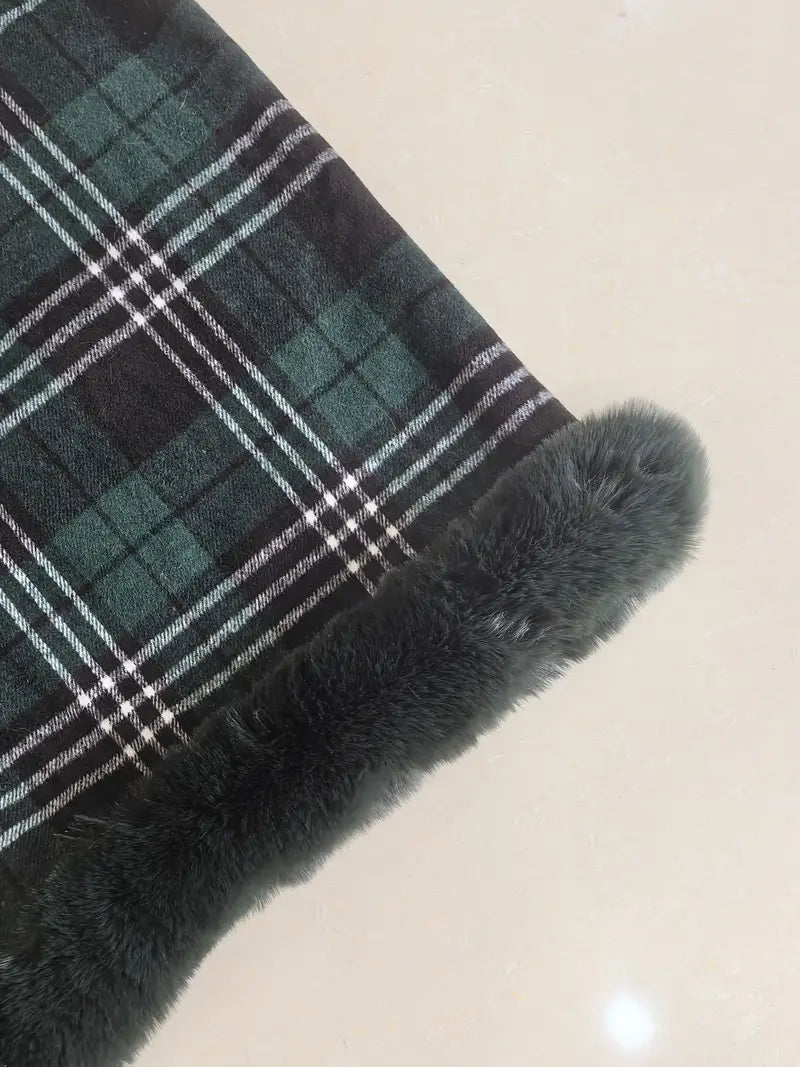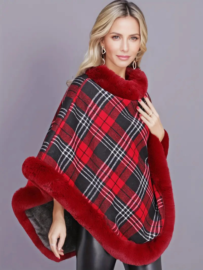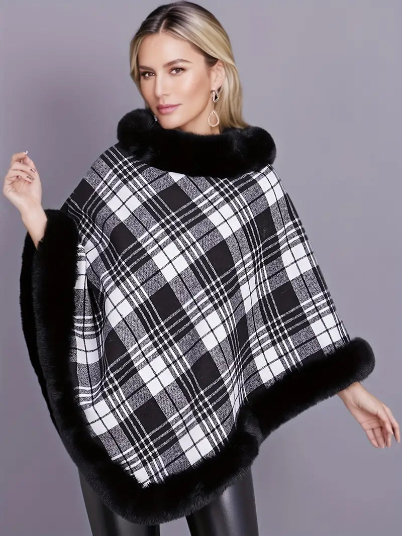 Châle Poncho Double Plaid Grande Taille avec Bordure
