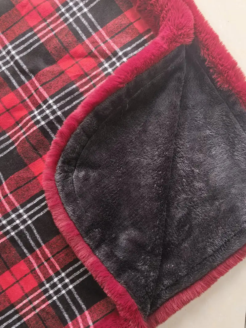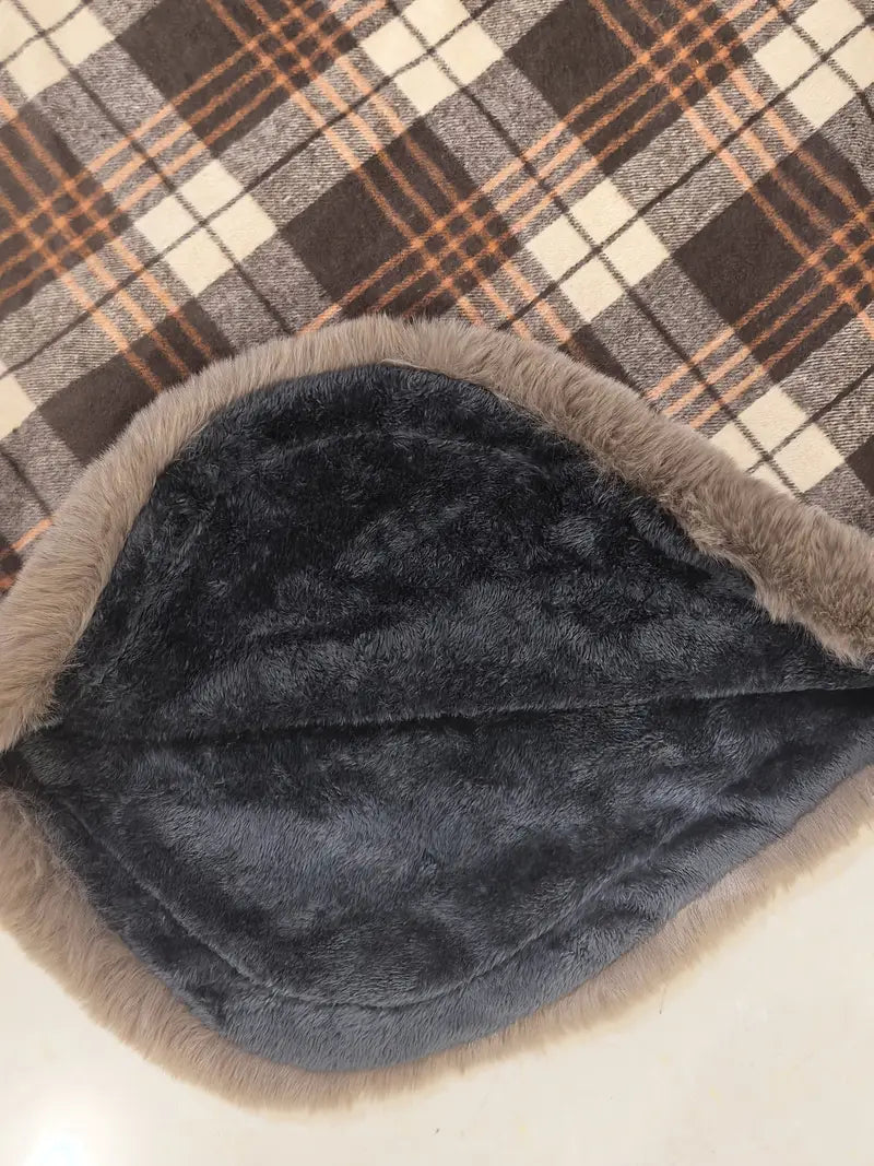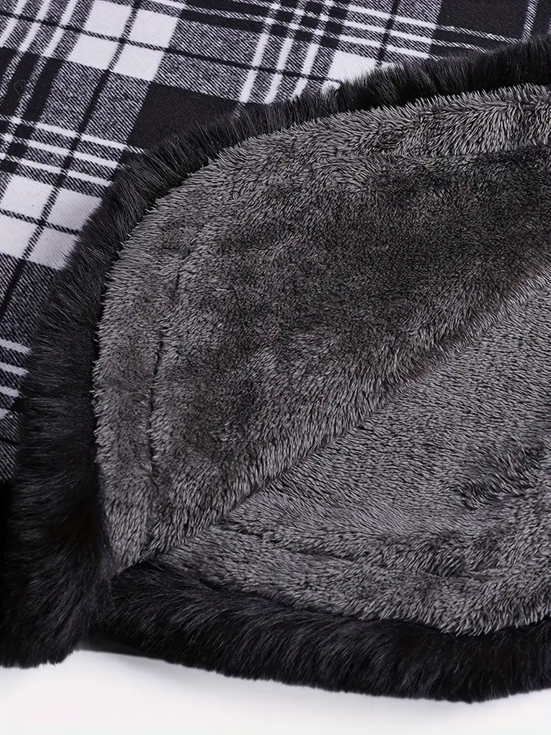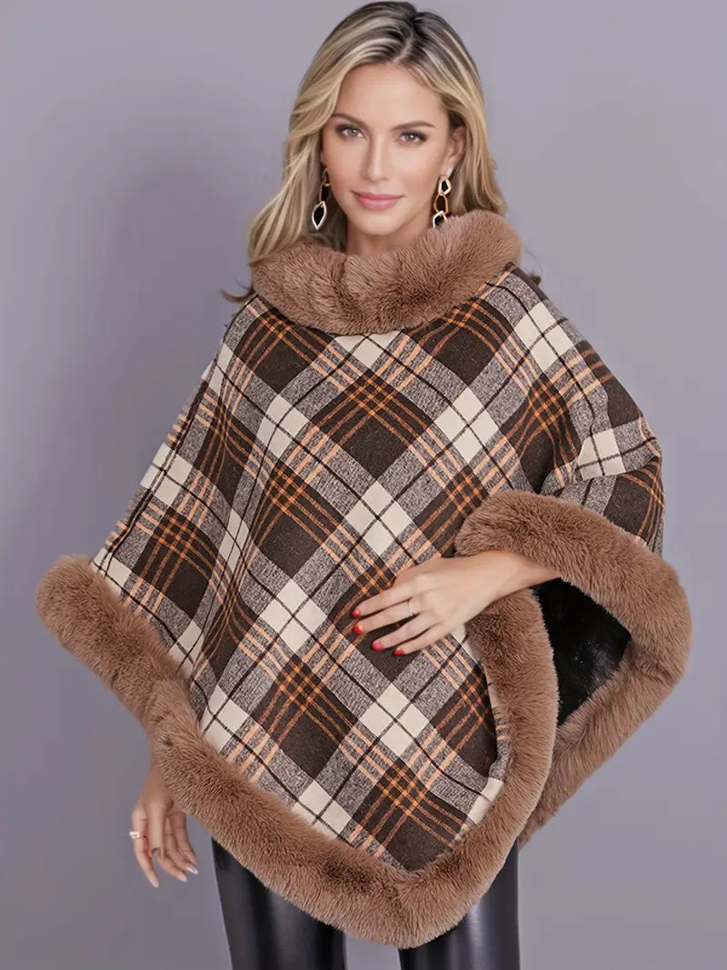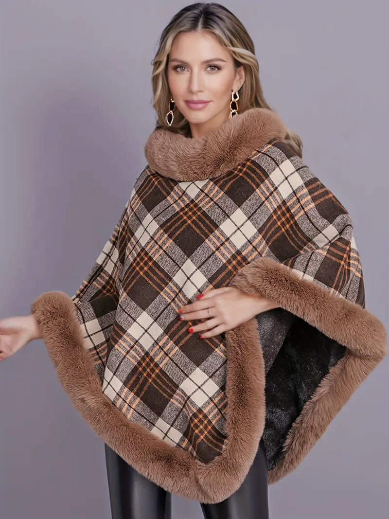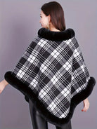 Châle Poncho Double Plaid Grande Taille avec Bordure
