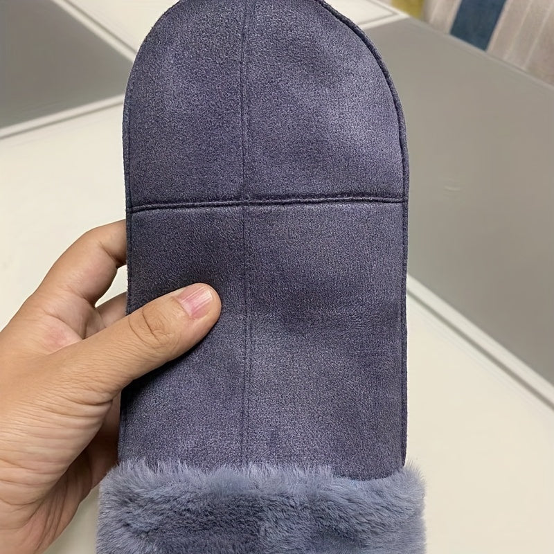 Enveloppez vos mains de douceur avec ces moufles en suédine effet daim, doublées d'une épaisse fausse fourrure ultra chaude. Un indispensable de l’hiver pour les frileuses élégantes.