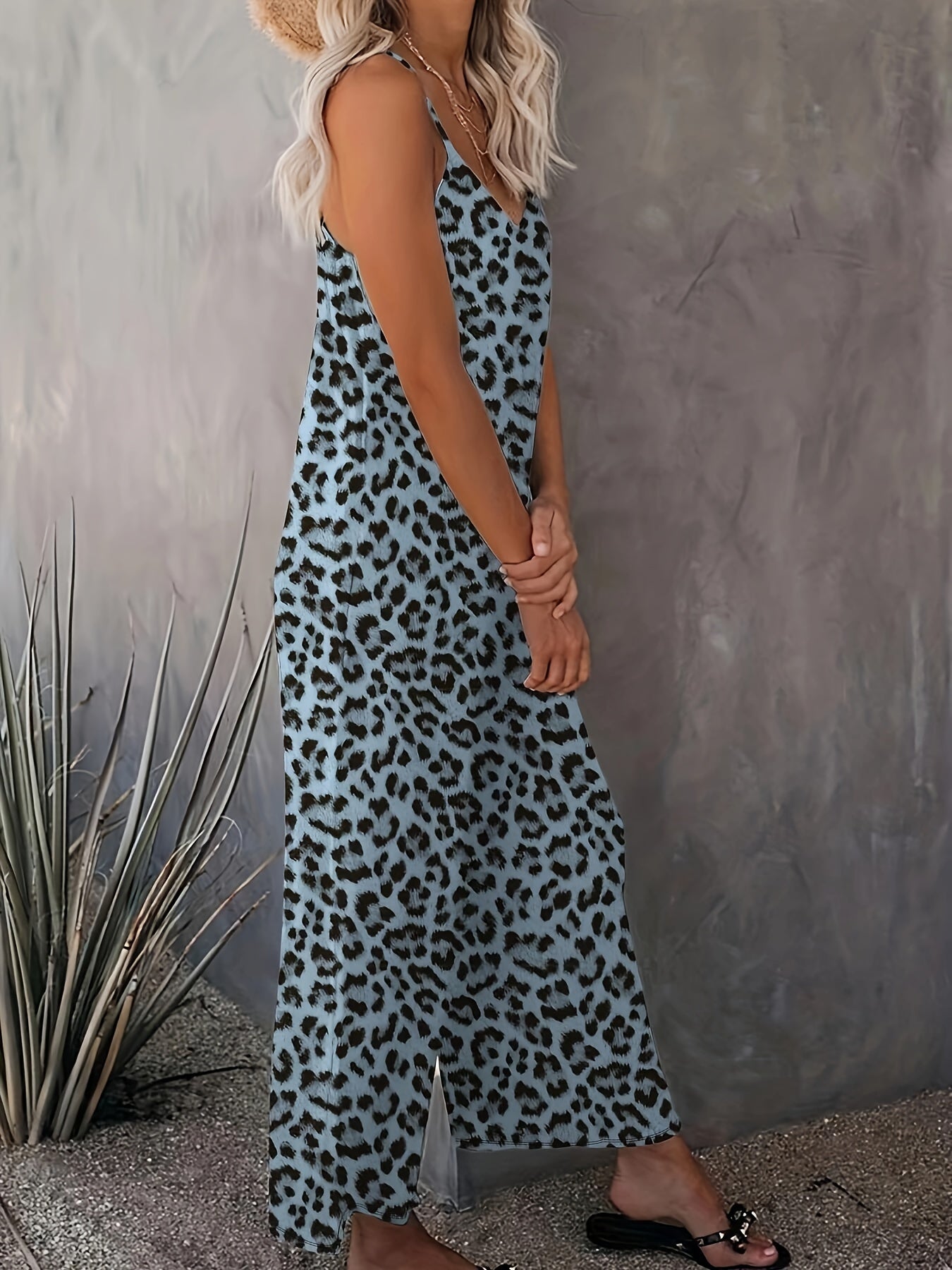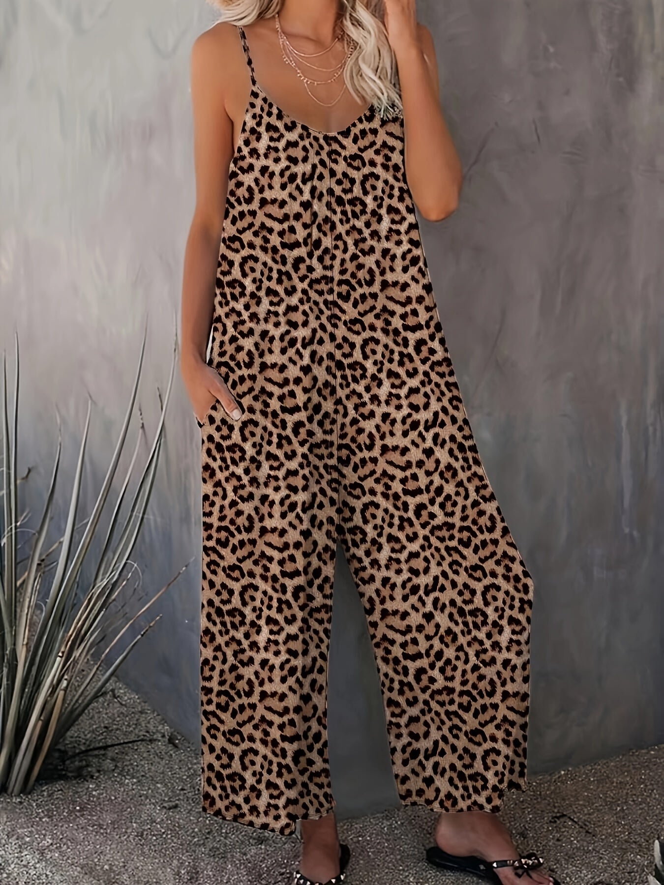 Combinaison fluide femme à imprimé léopard et bretelles fines