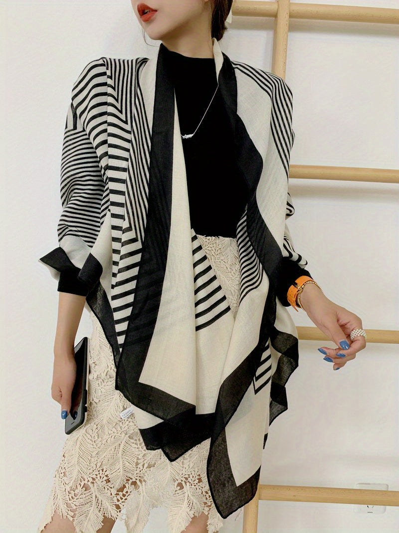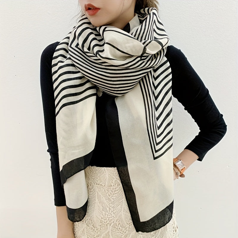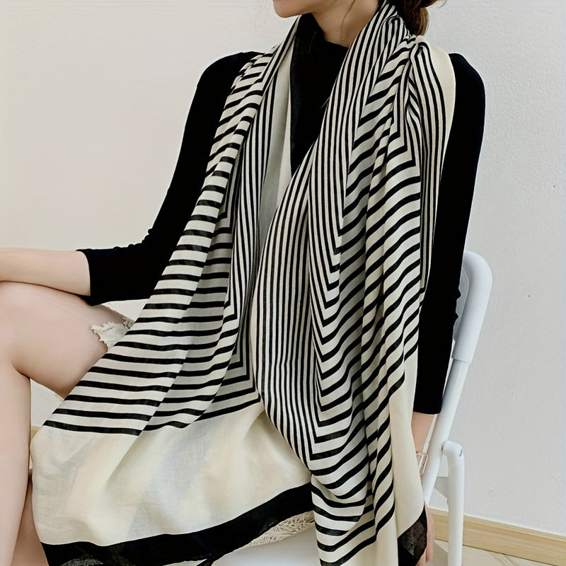 Une touche graphique et intemporelle à ajouter à toutes vos tenues. Cette écharpe à rayures apporte structure et élégance à n’importe quel look, tout en restant douce et facile à porter.