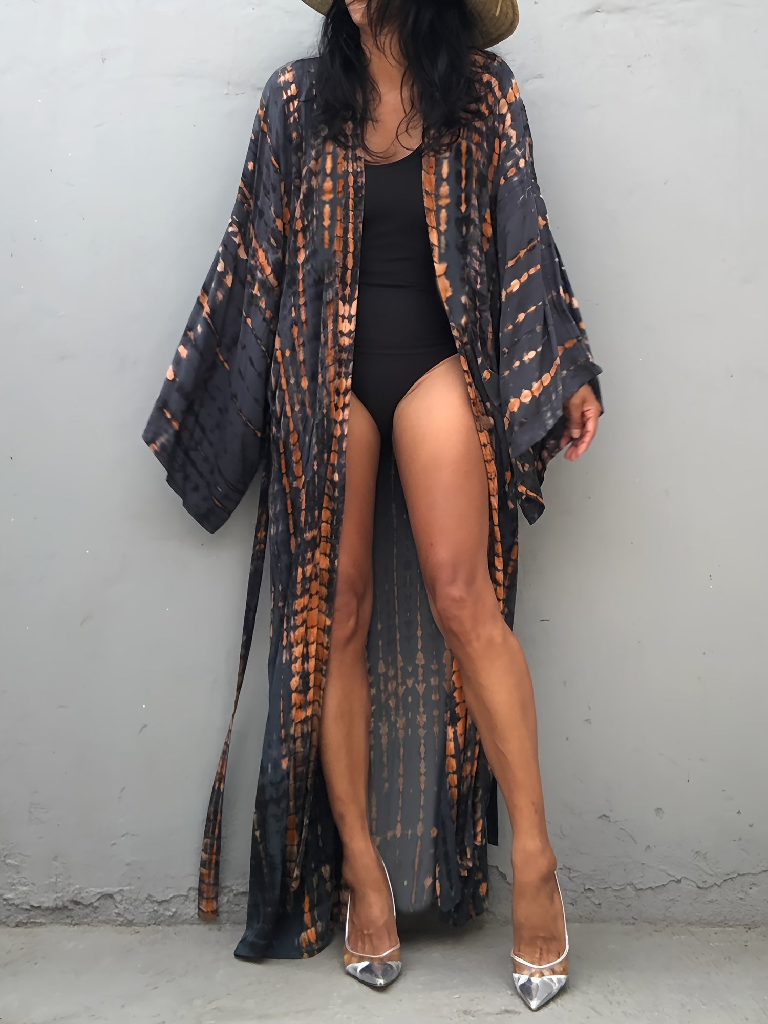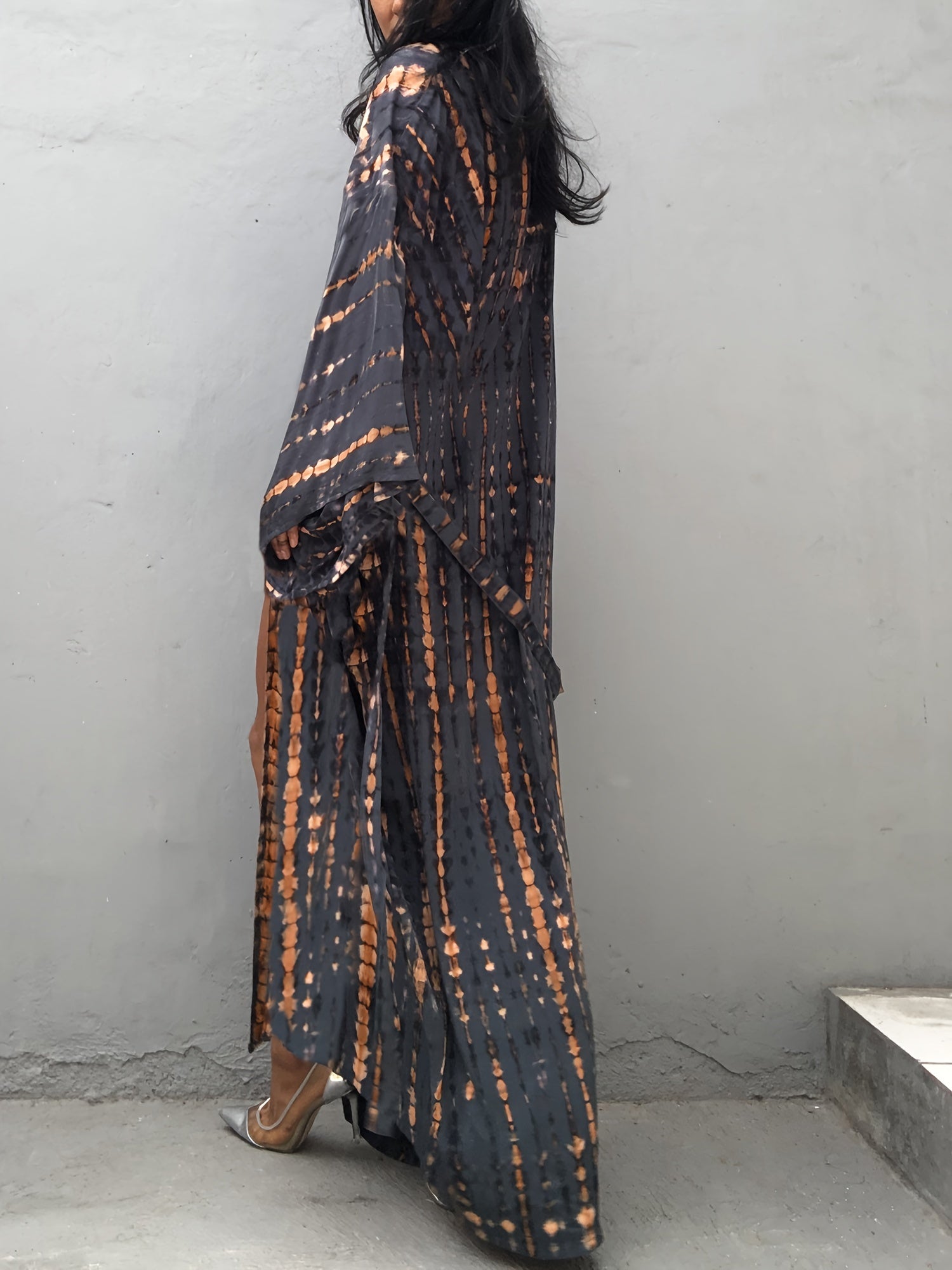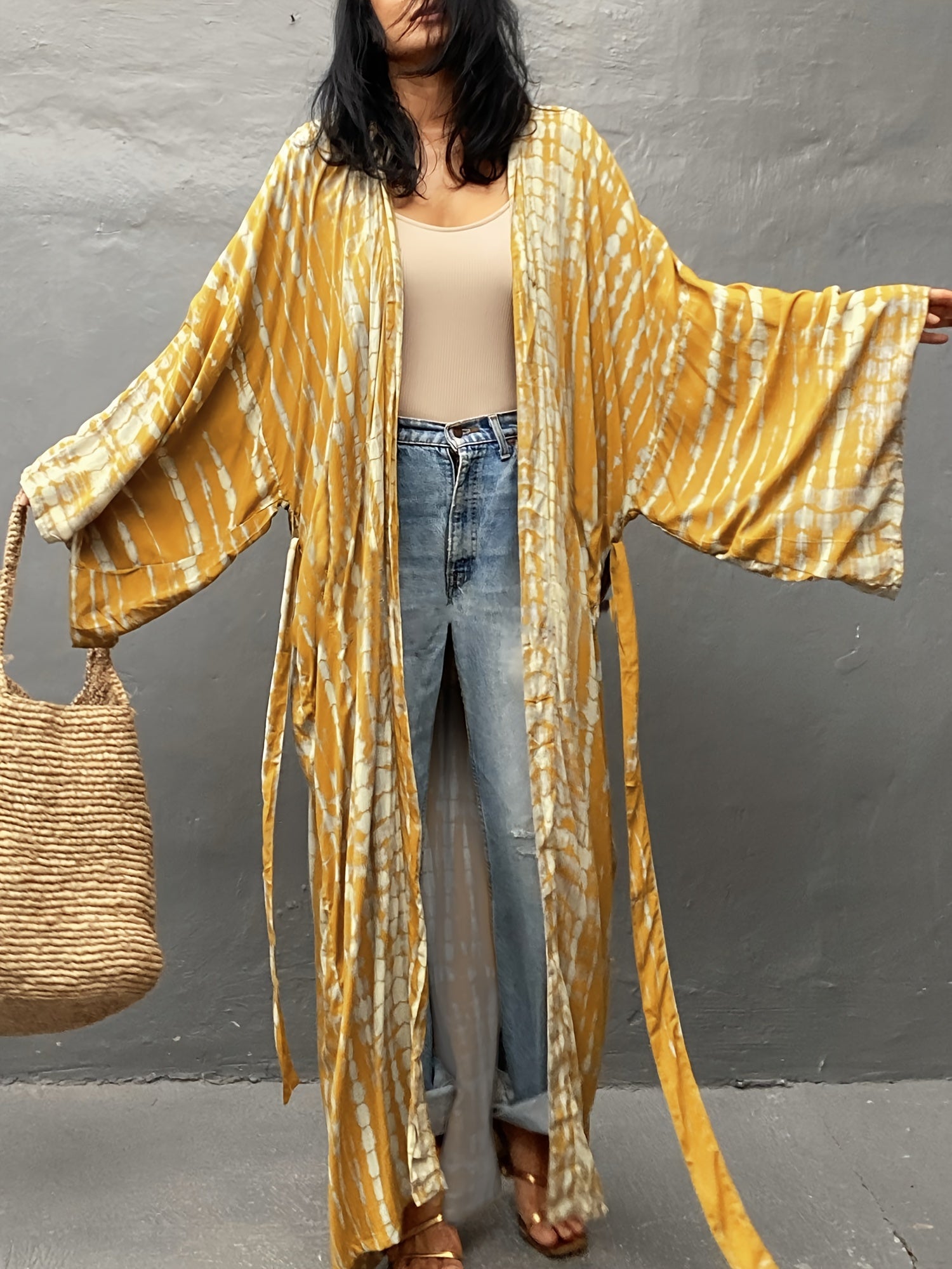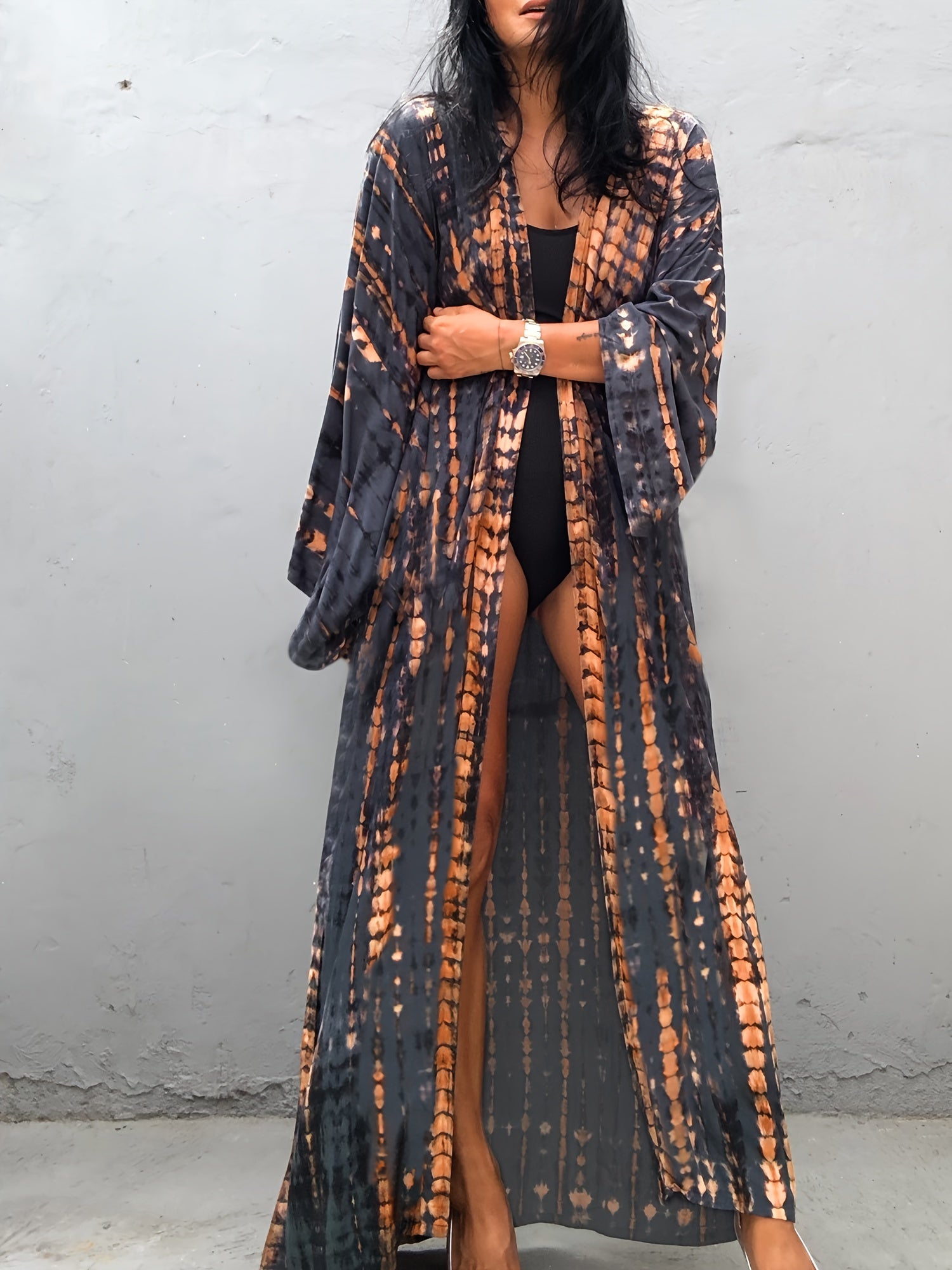 Kimono long fluide à imprimé tie-dye