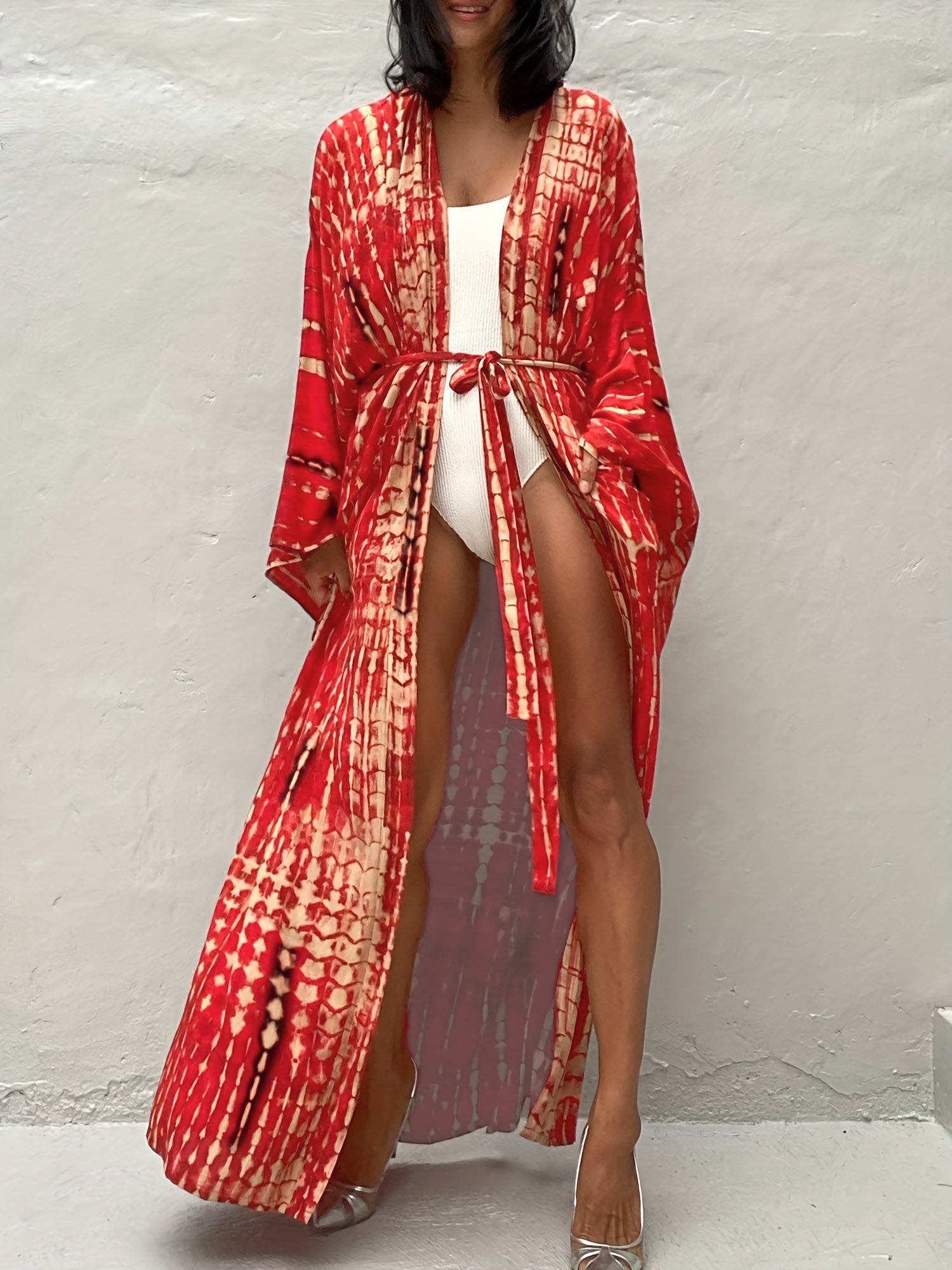 Veste longue d’été style plage à imprimé tie-dye