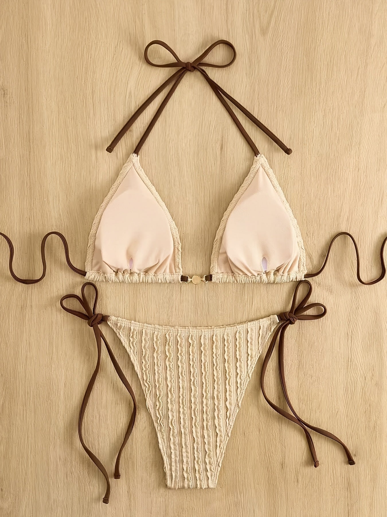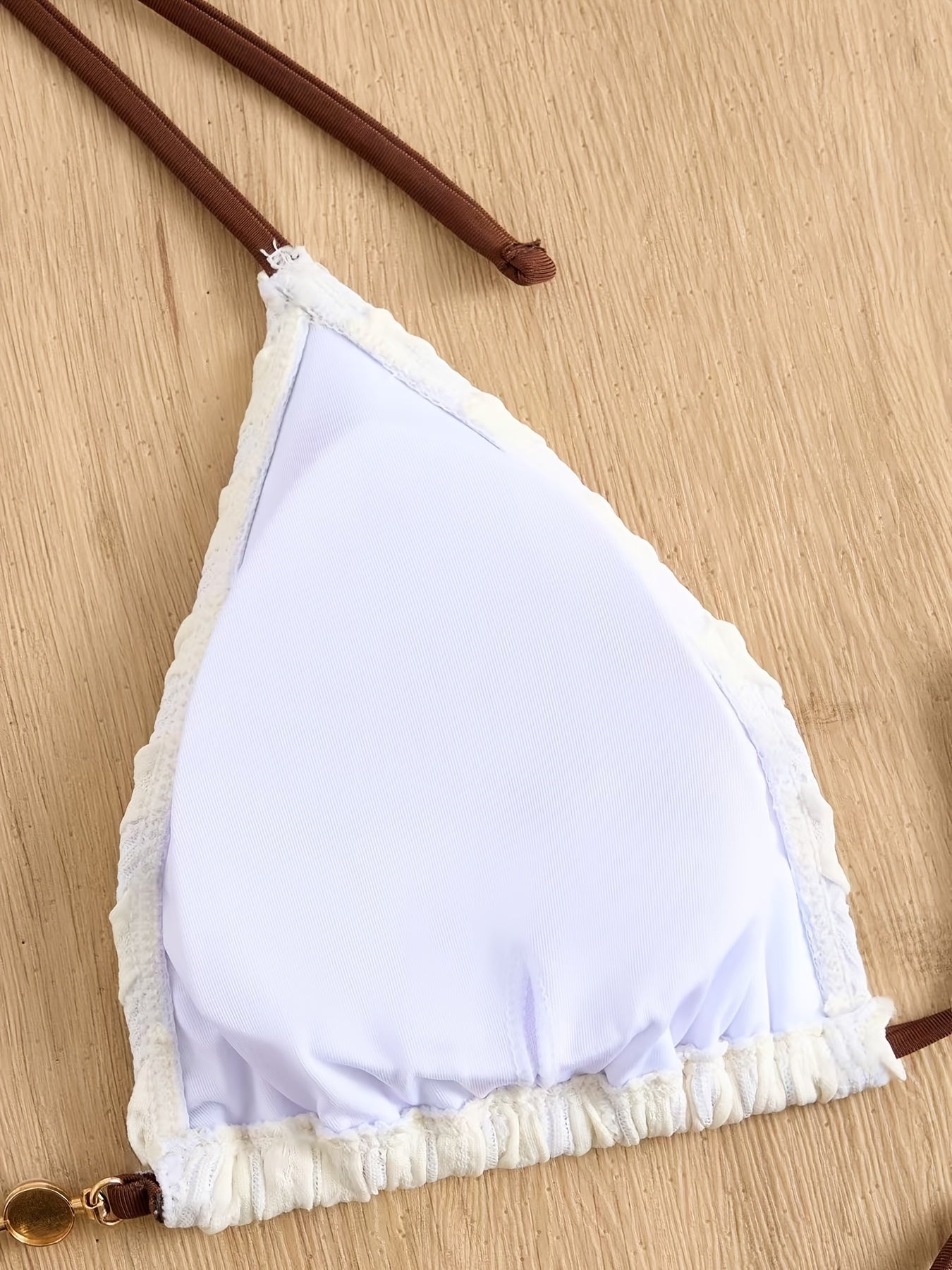 Le haut triangle reste une référence intemporelle parmi les maillots de bain 2 pièces pour femme. Il se compose de deux triangles de tissu qui soulignent naturellement la poitrine tout en offrant une grande liberté de mouvement. Le style bandeau plaît pour son côté minimaliste et pratique, évitant les marques disgracieuses. Quant à la brassière, elle assure un look sportif tout en offrant un bon maintien, idéale pour celles qui aiment nager ou jouer sur la plage.