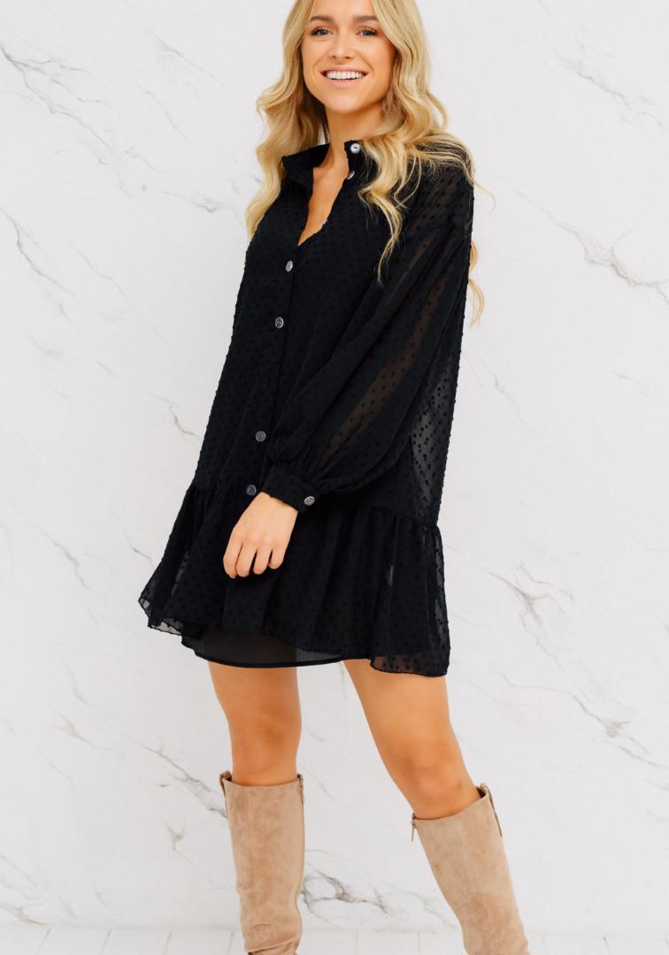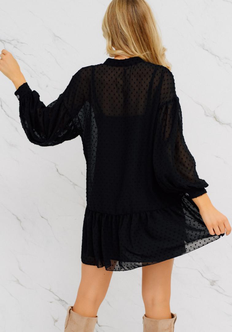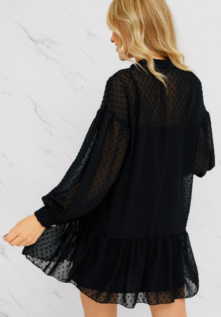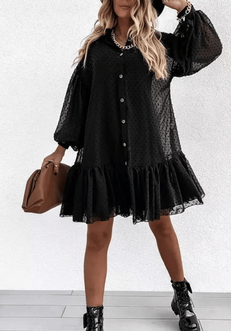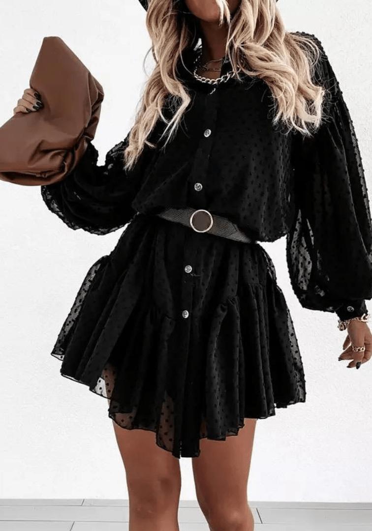 Avec un col rond, des manches longues ballon, boutonnée sur le devant, manches plumetis et poignets avec boutons, vous serez élégante.