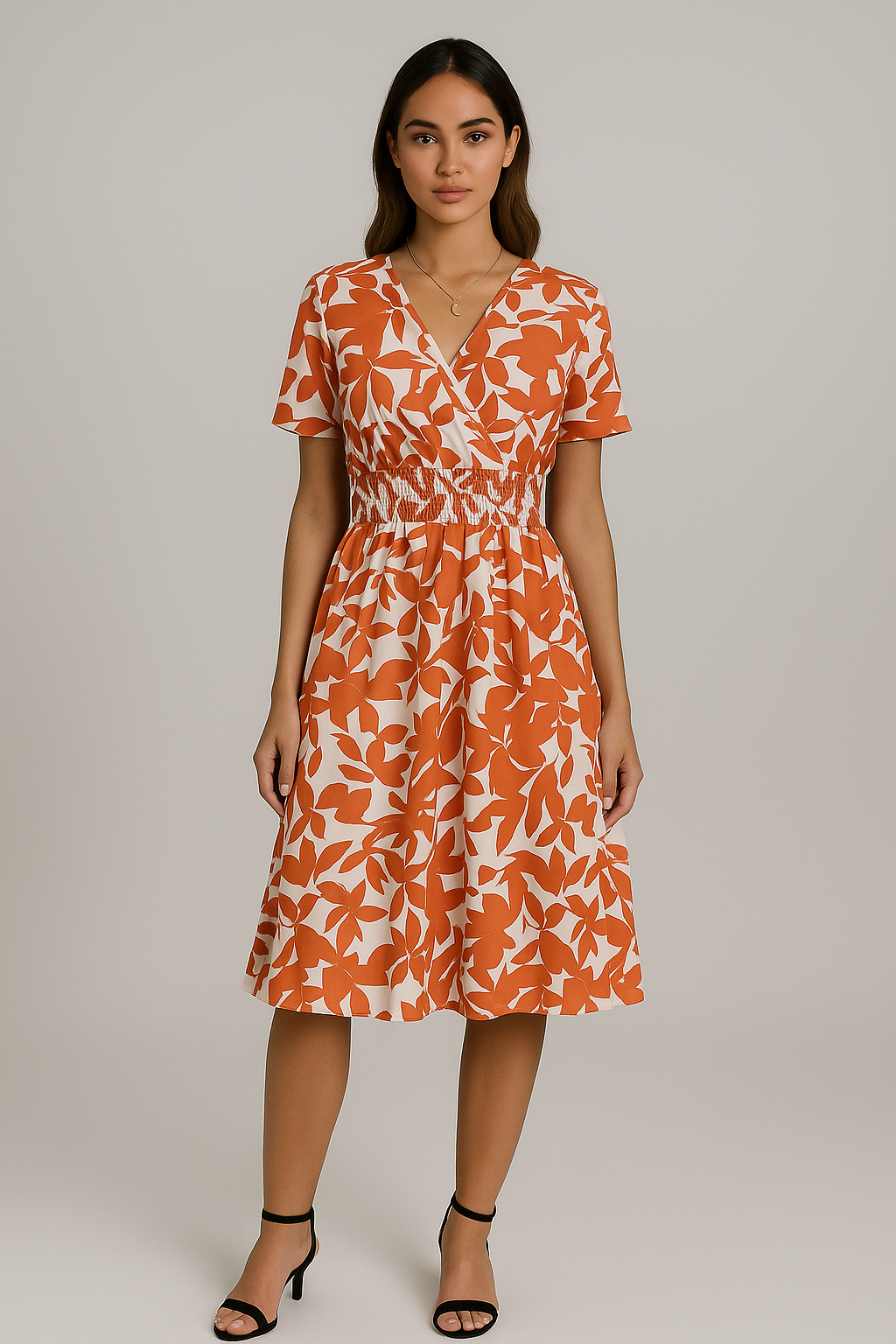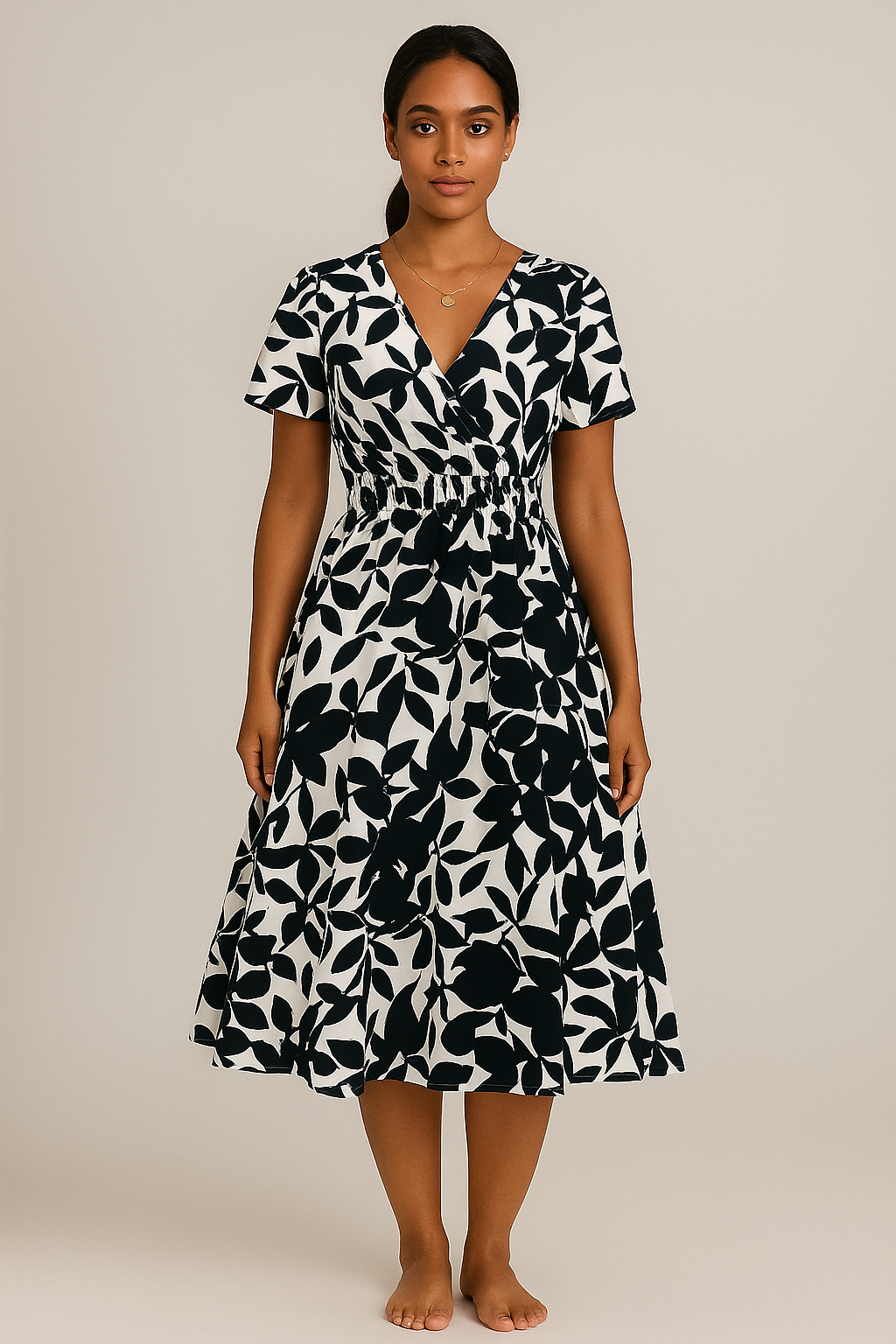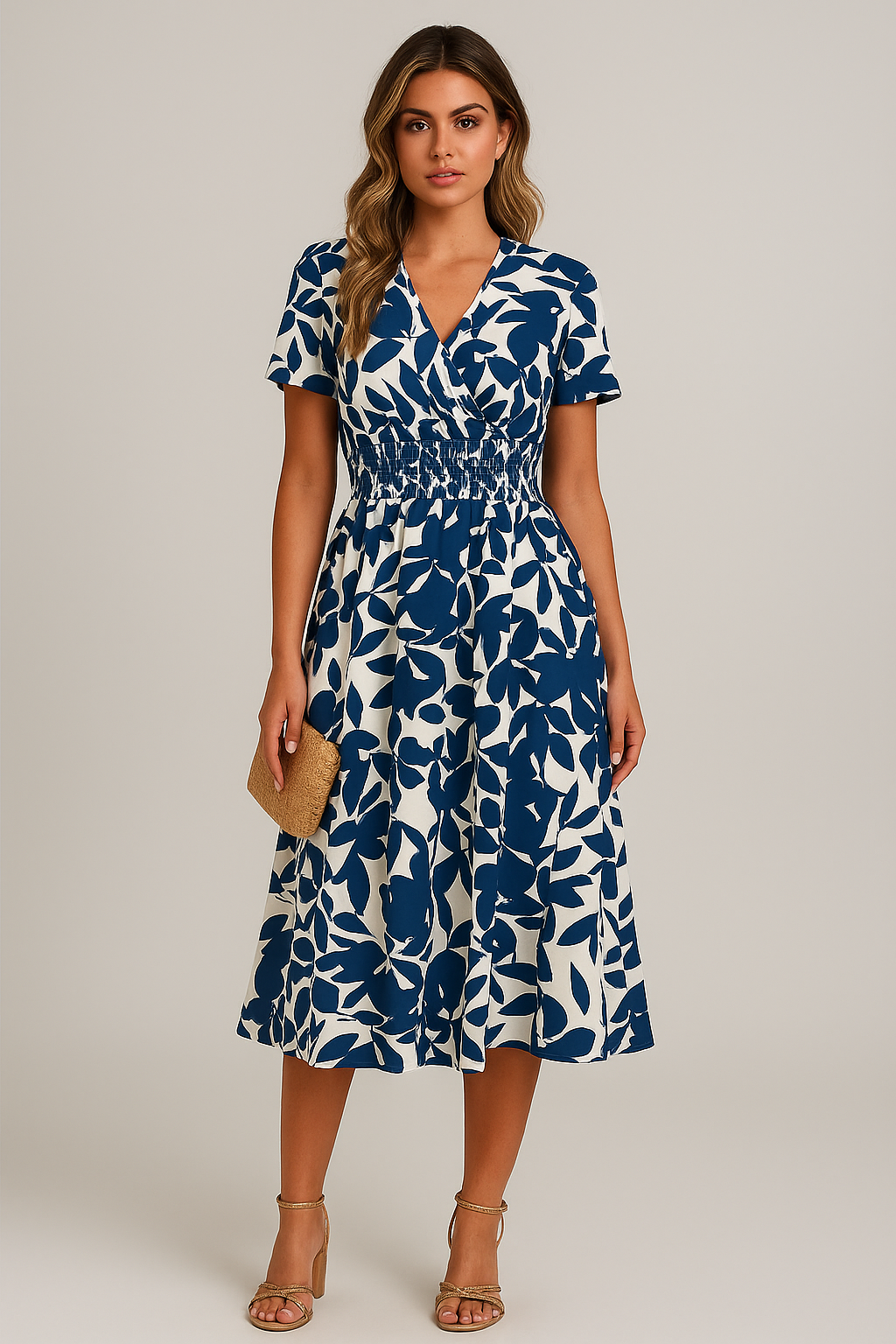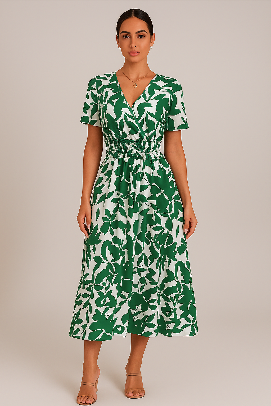 Robe portefeuille été femme imprimé feuillage manches courtes