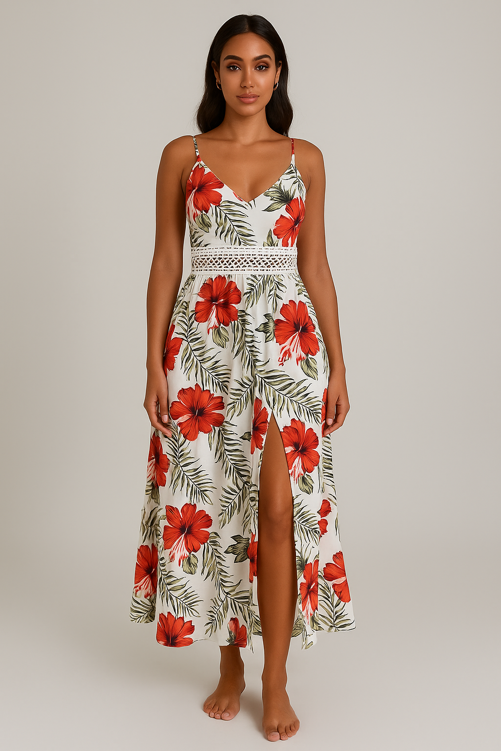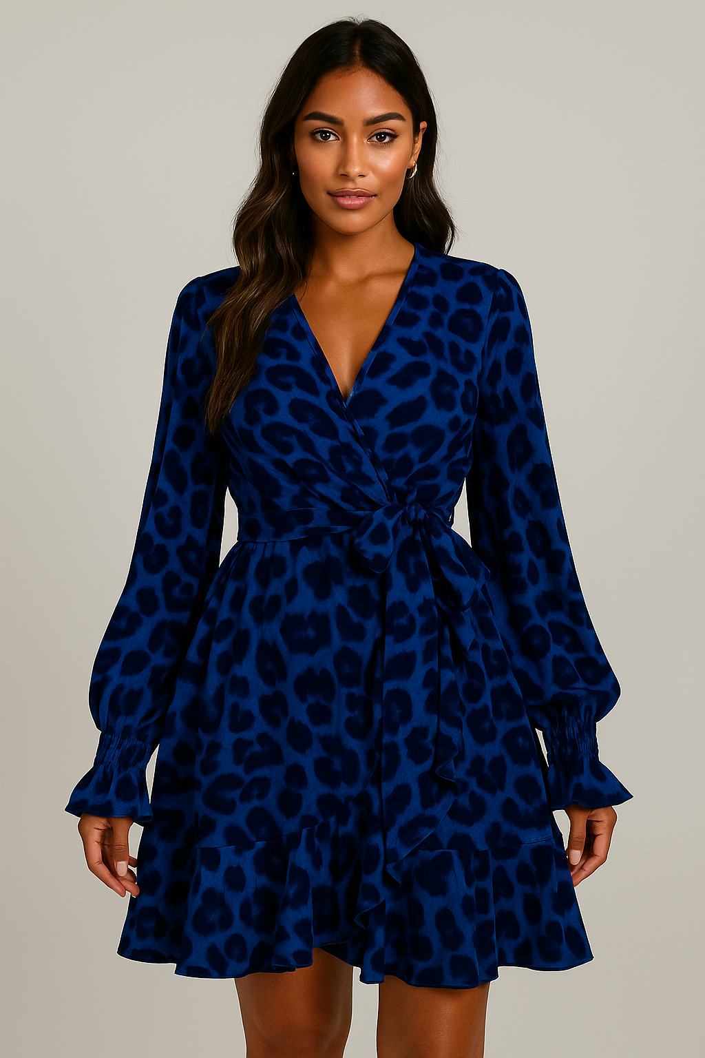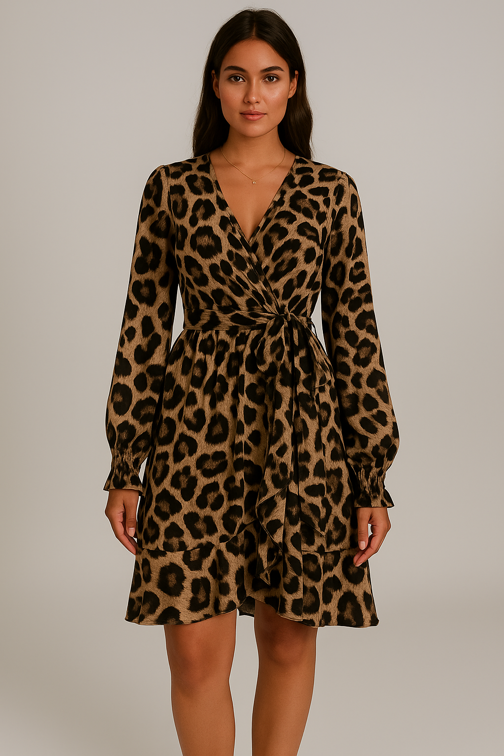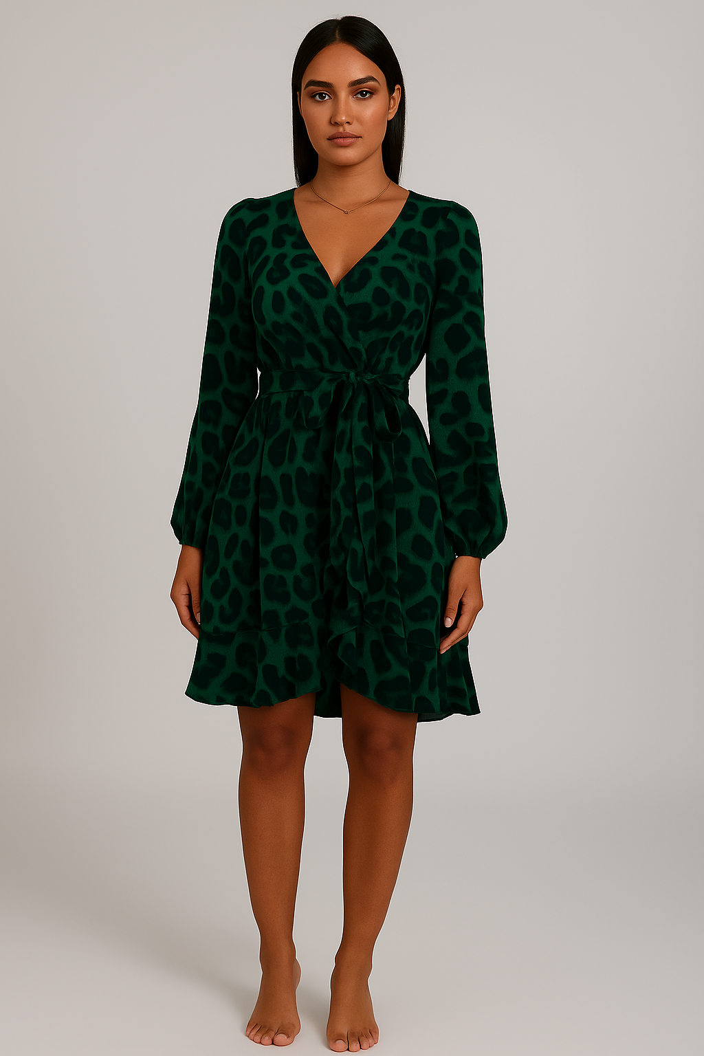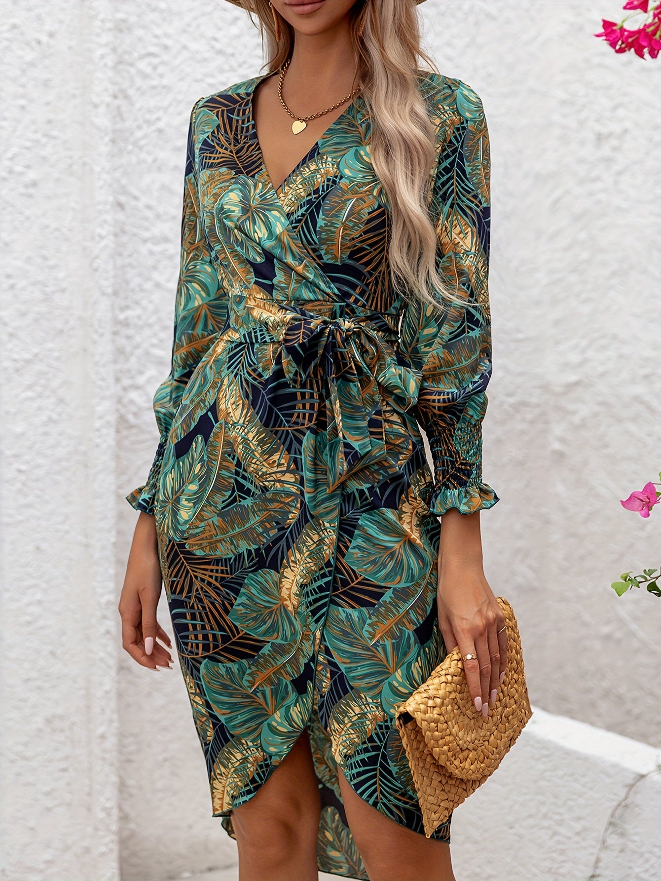 Robe portefeuille mi-longue imprimé tropical femme manches longues