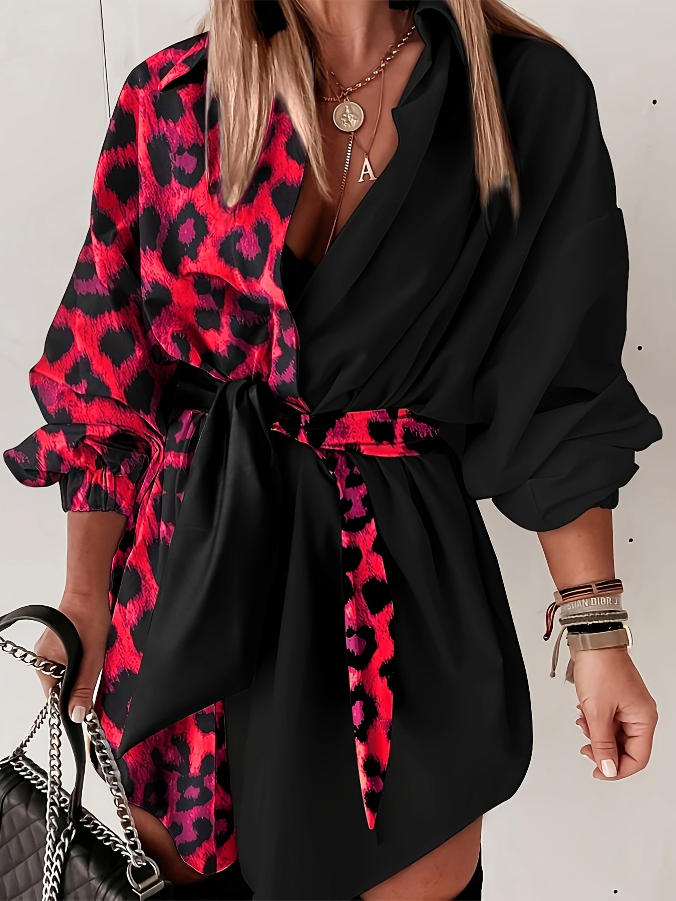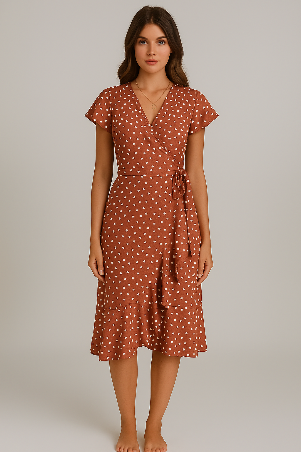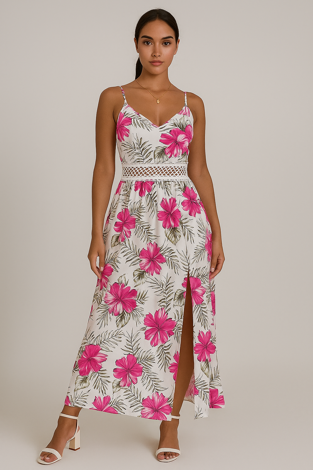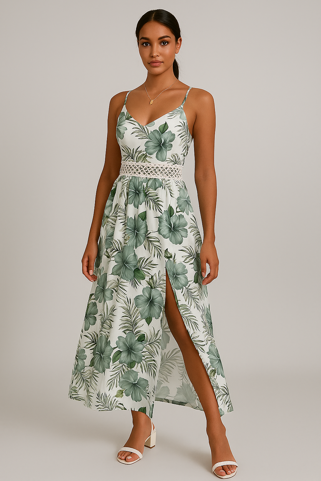 Robe portefeuille mi-longue imprimé tropical femme manches longues