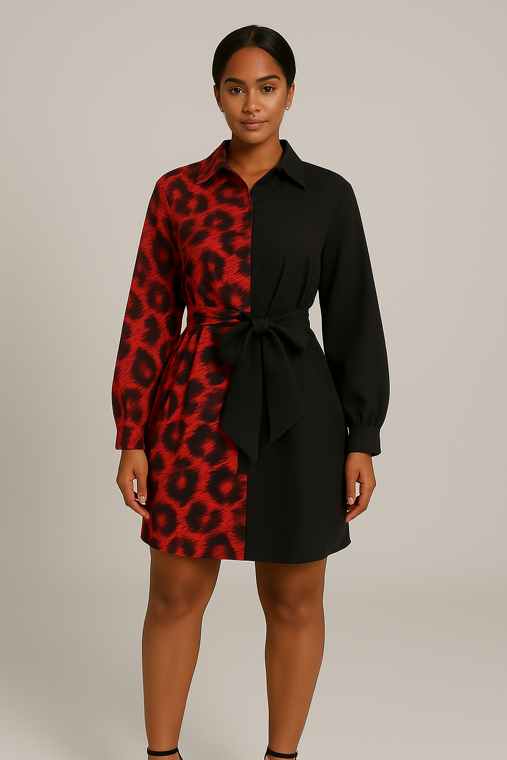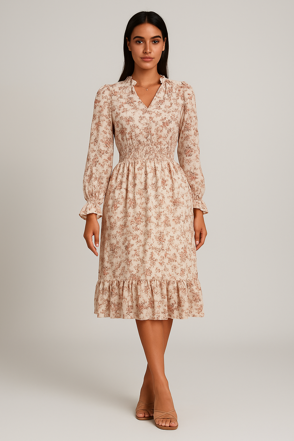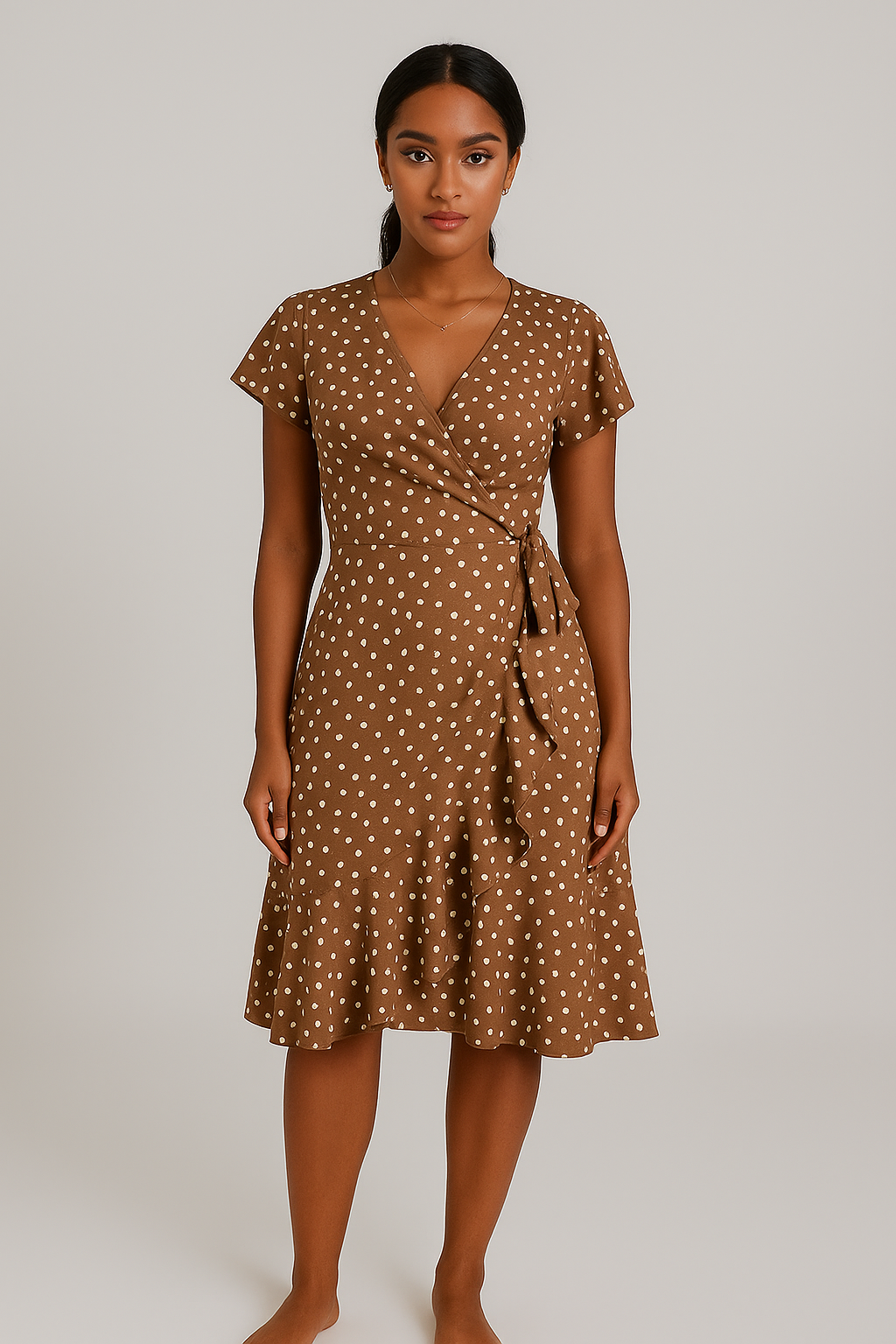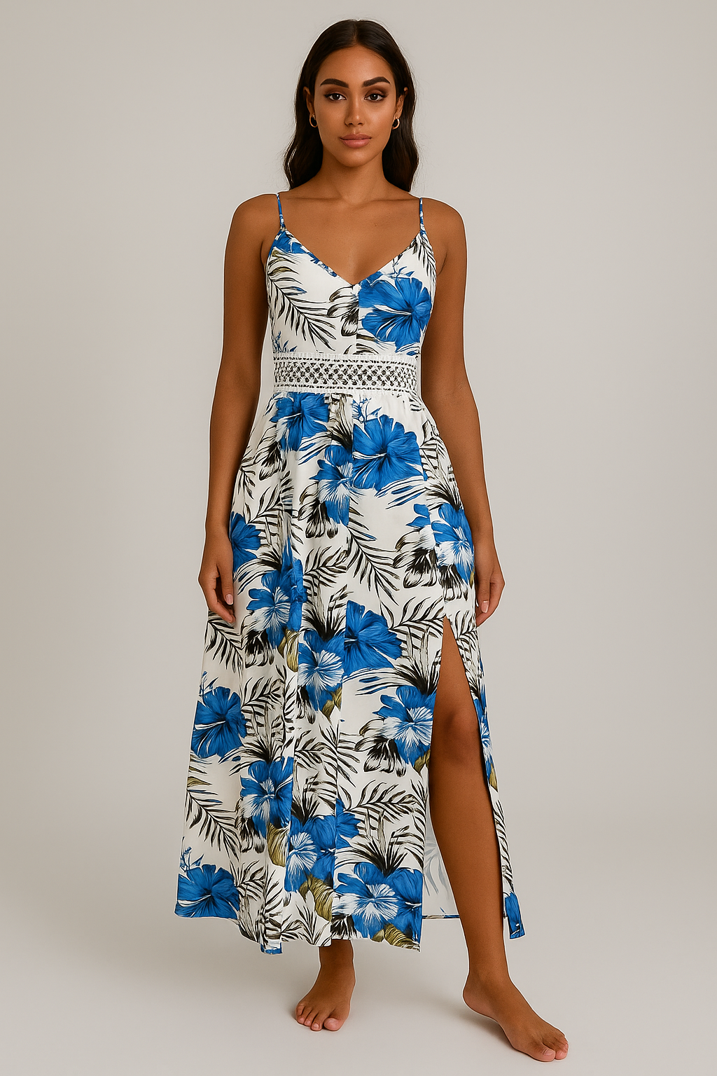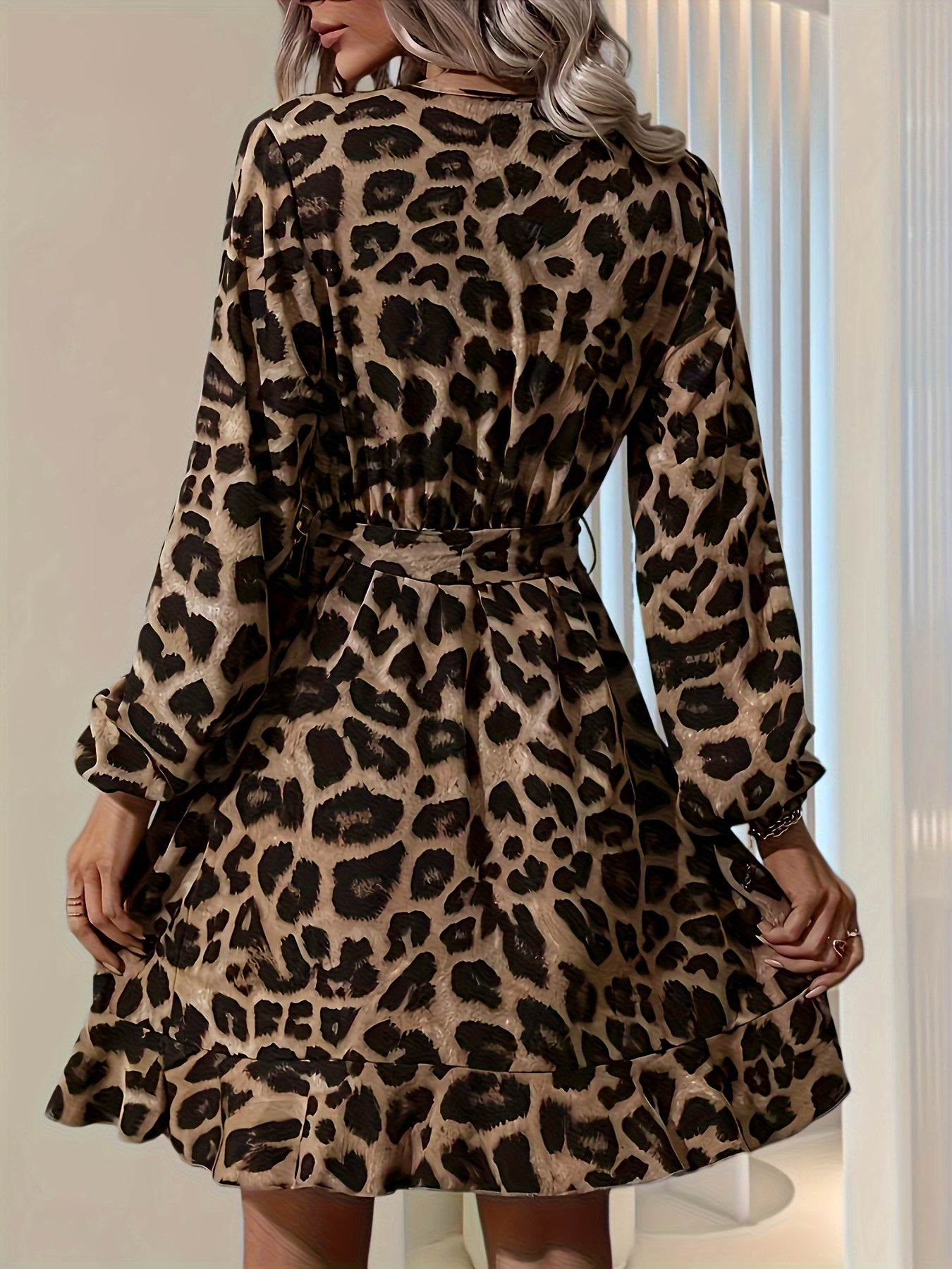 Robe portefeuille mi-longue imprimé tropical femme manches longues