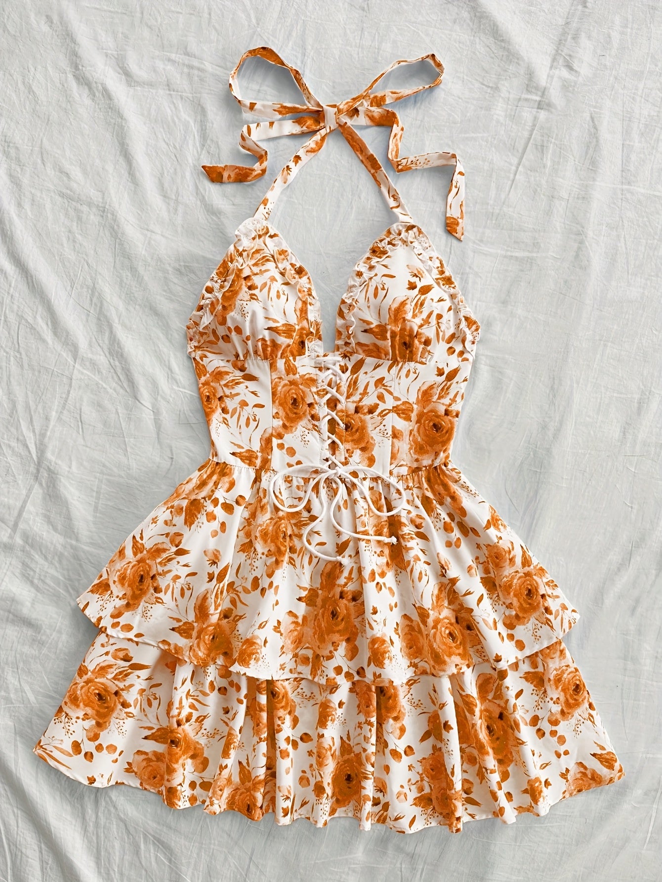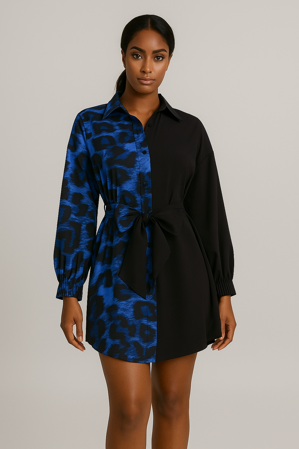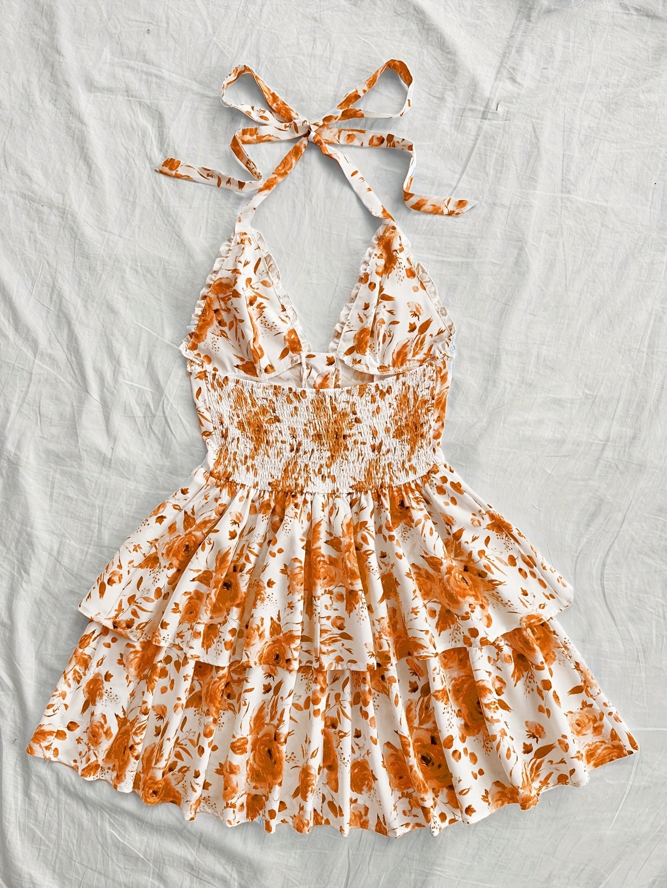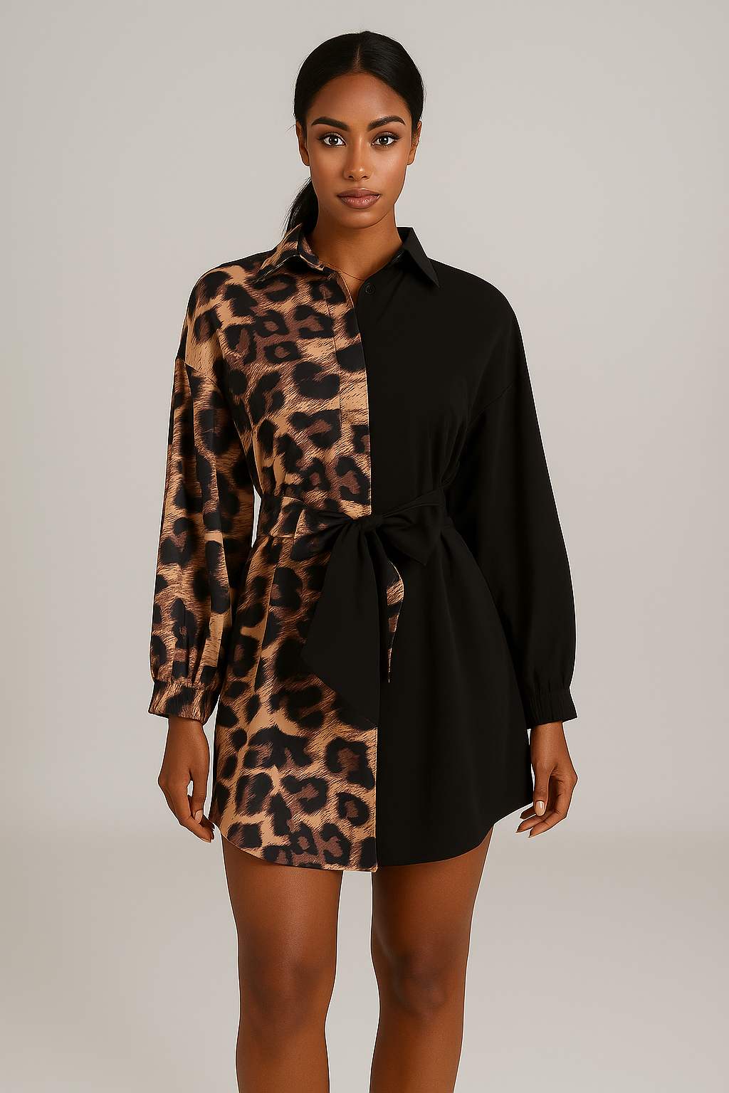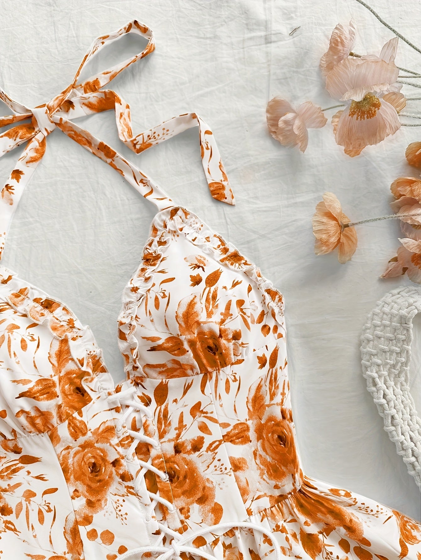 Robe portefeuille mi-longue imprimé tropical femme manches longues