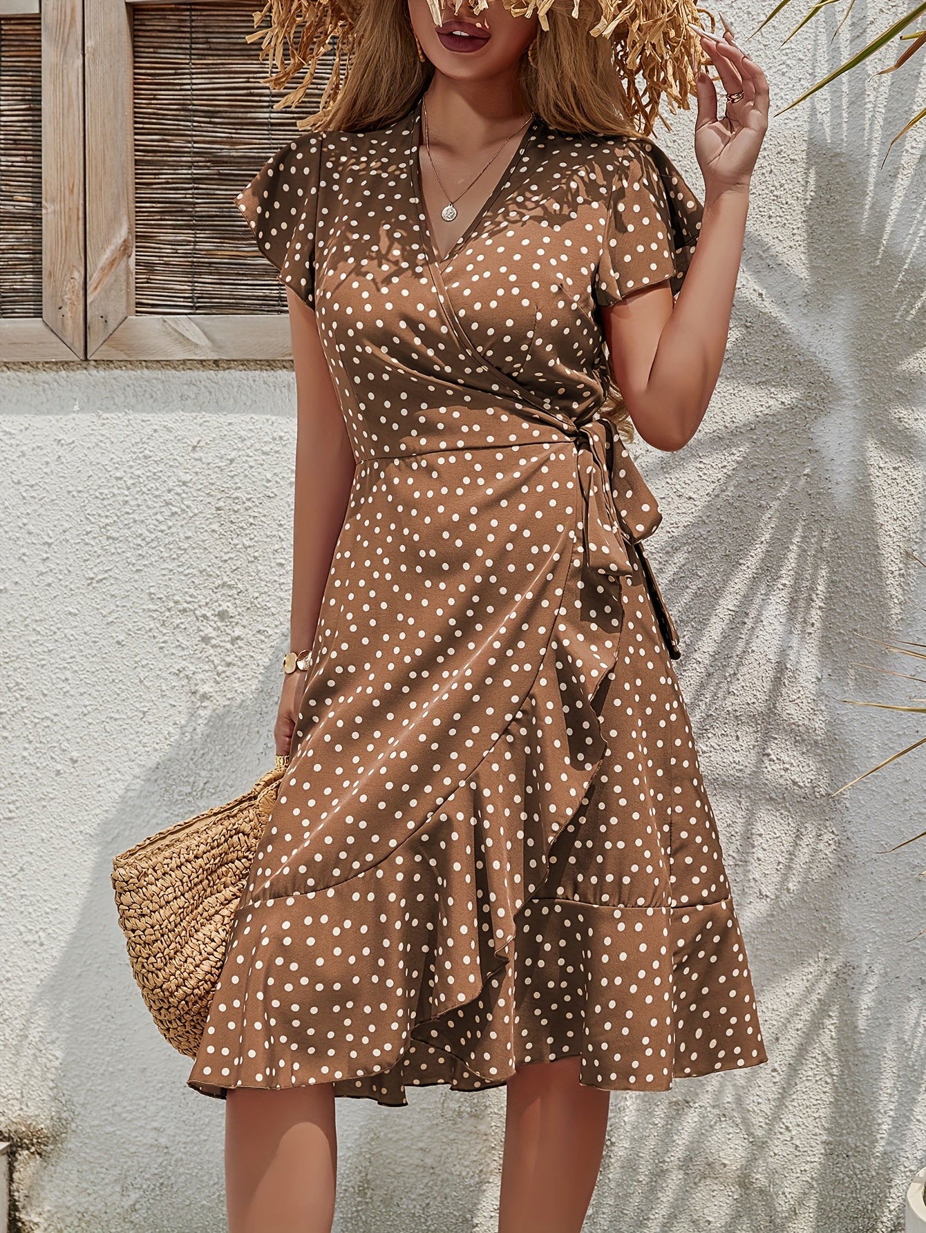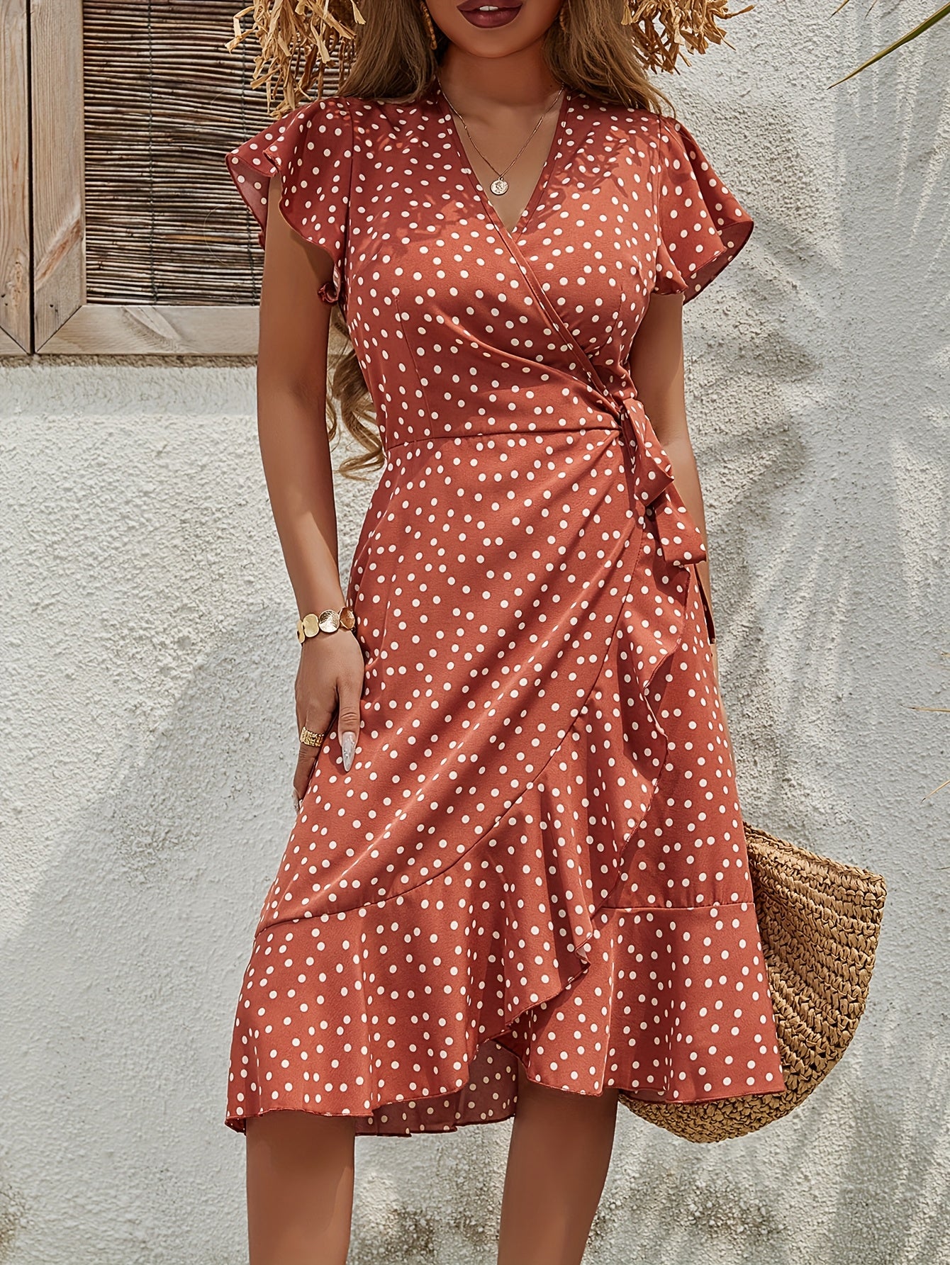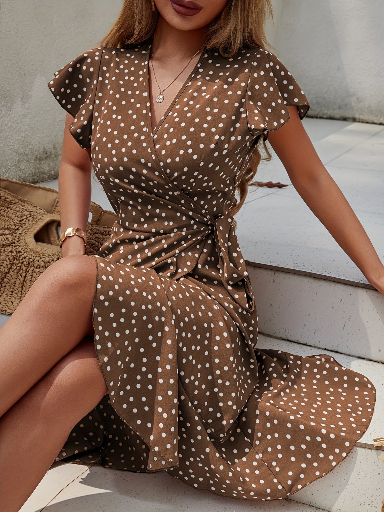 Robe portefeuille mi-longue sans manches imprimé abstrait femme