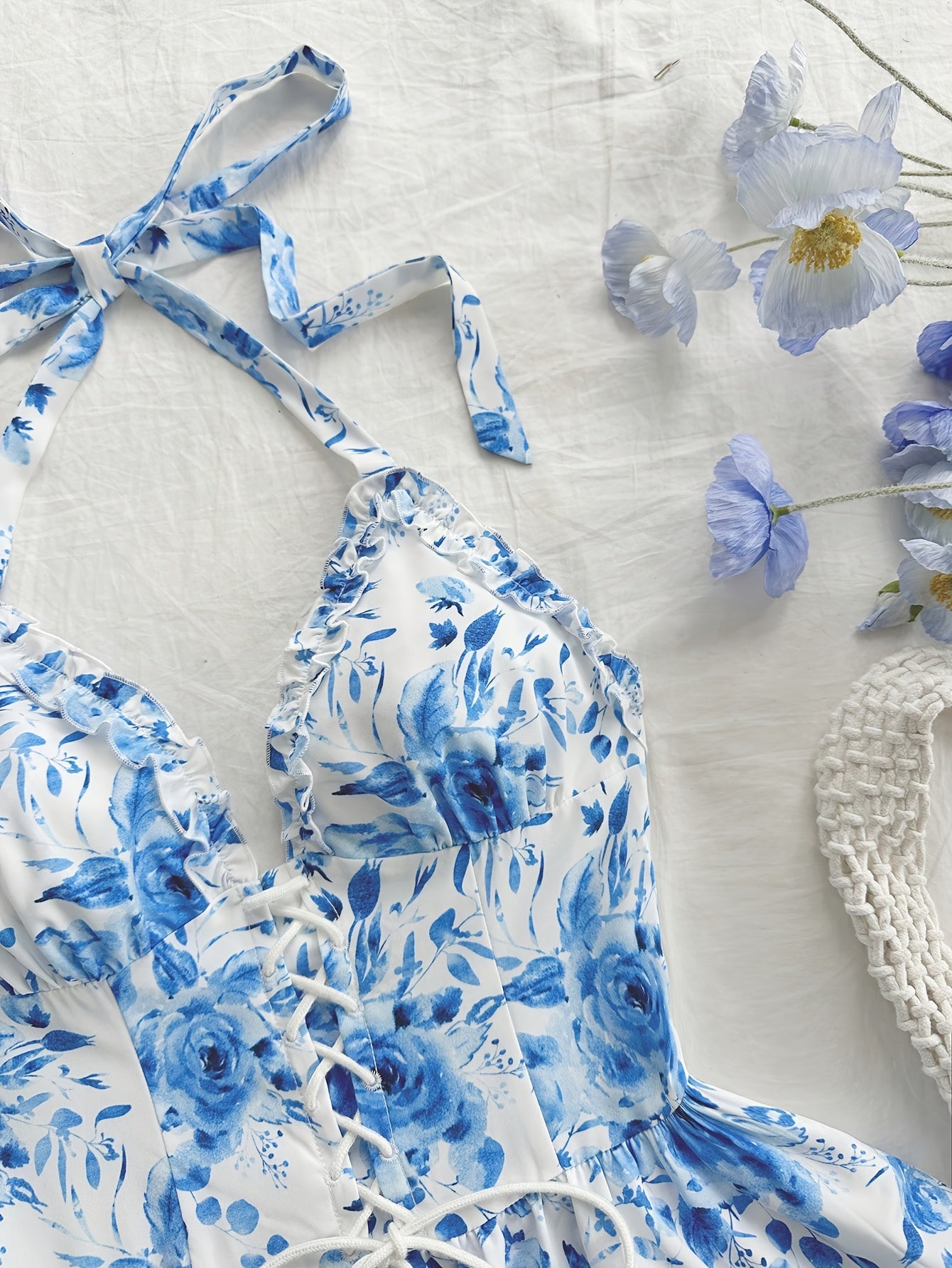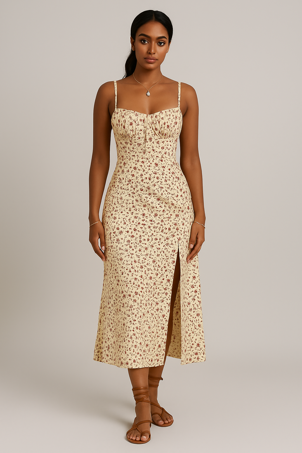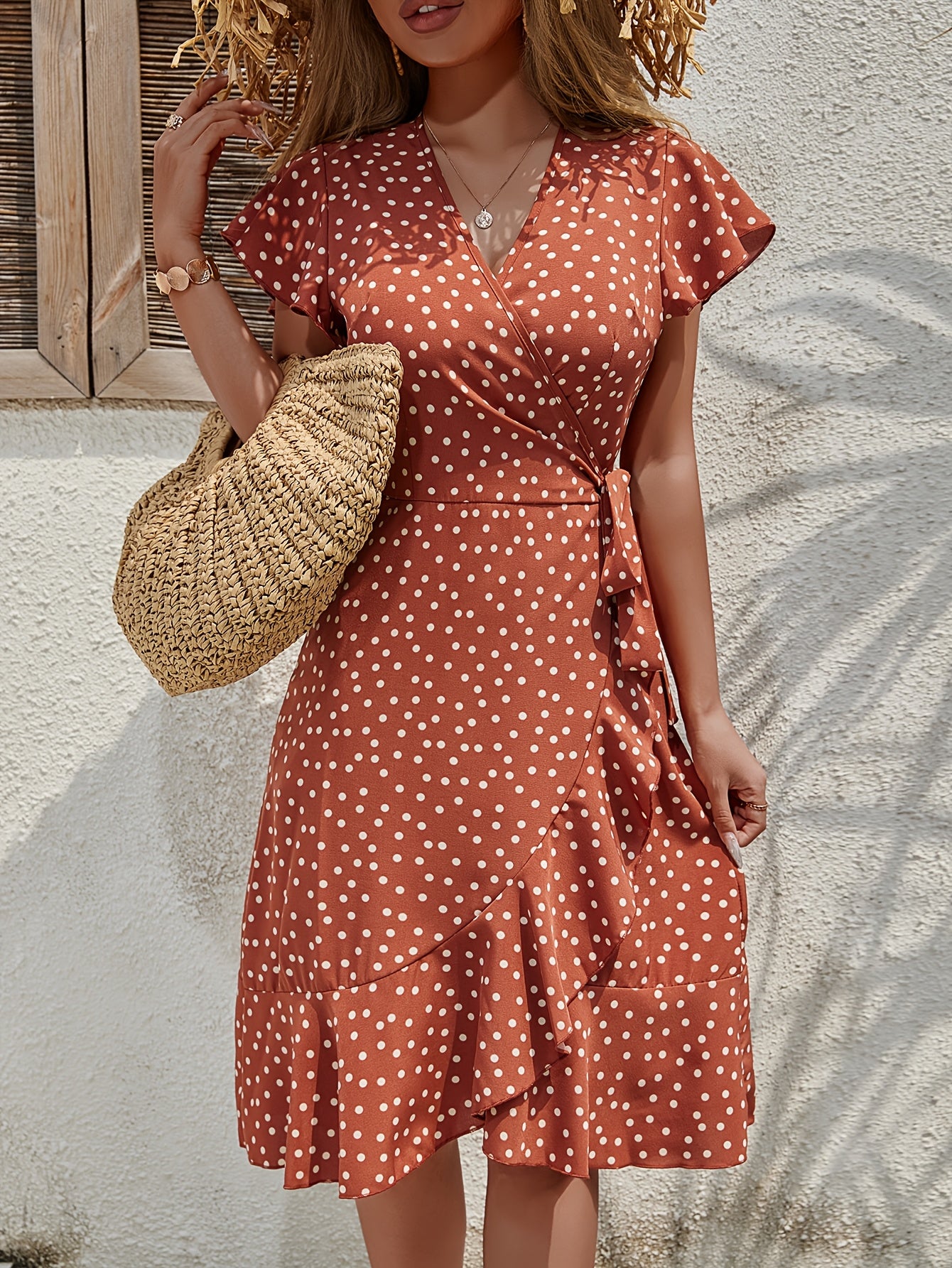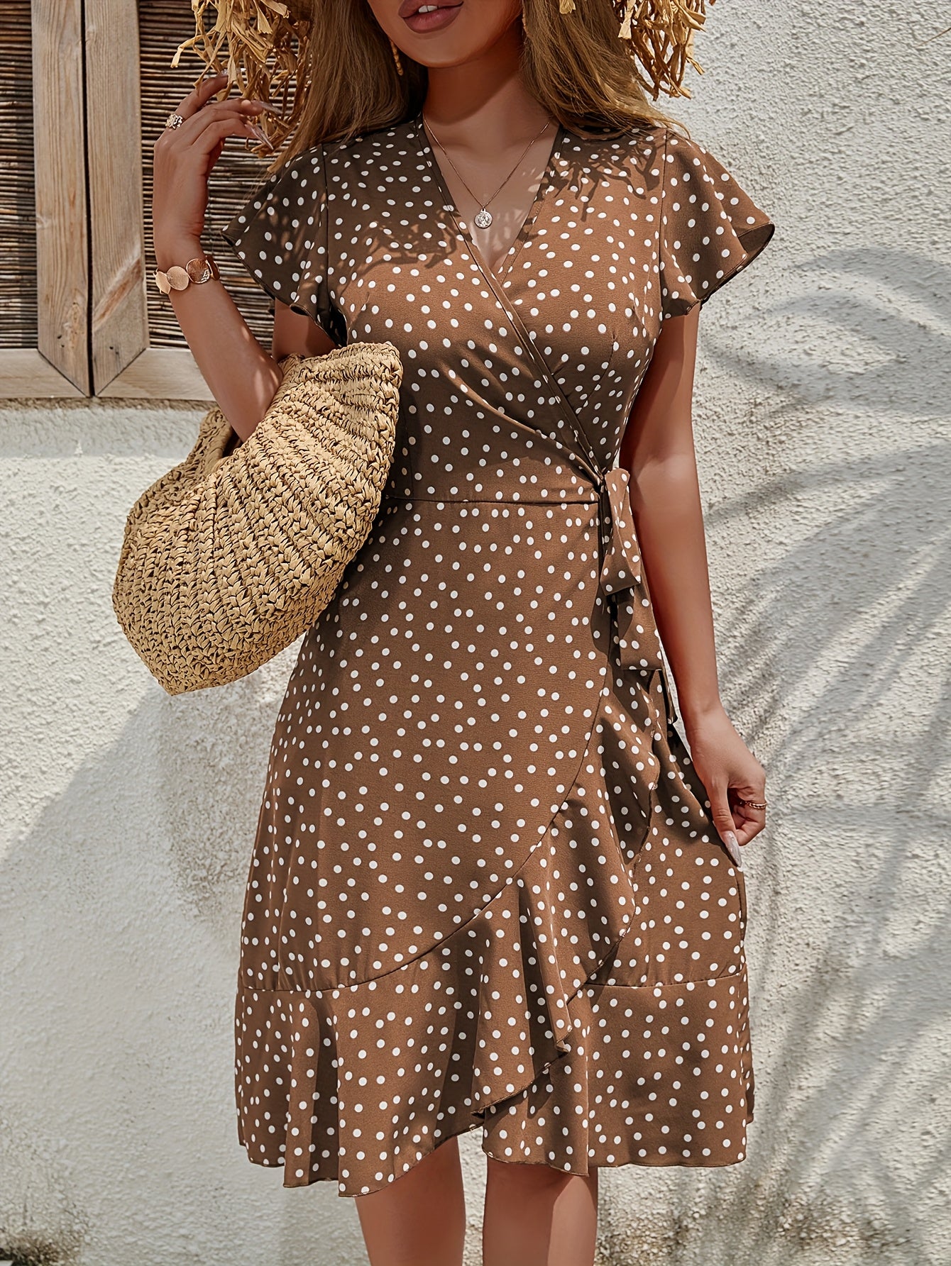 Robe portefeuille mi-longue sans manches imprimé abstrait femme