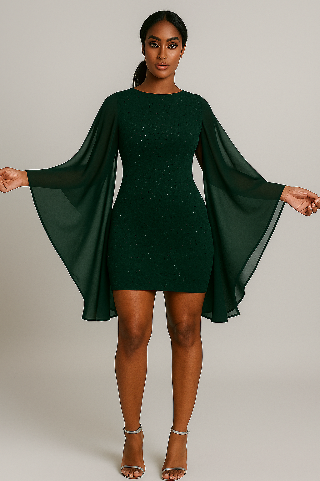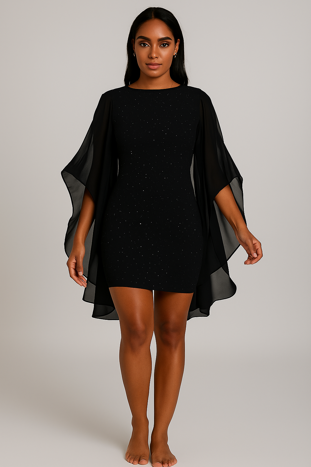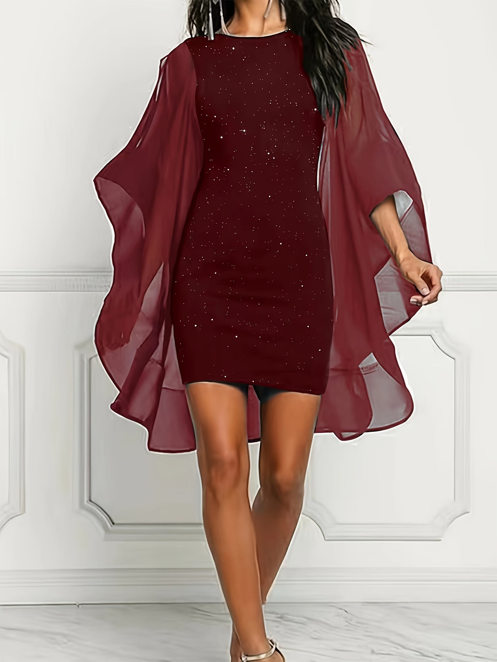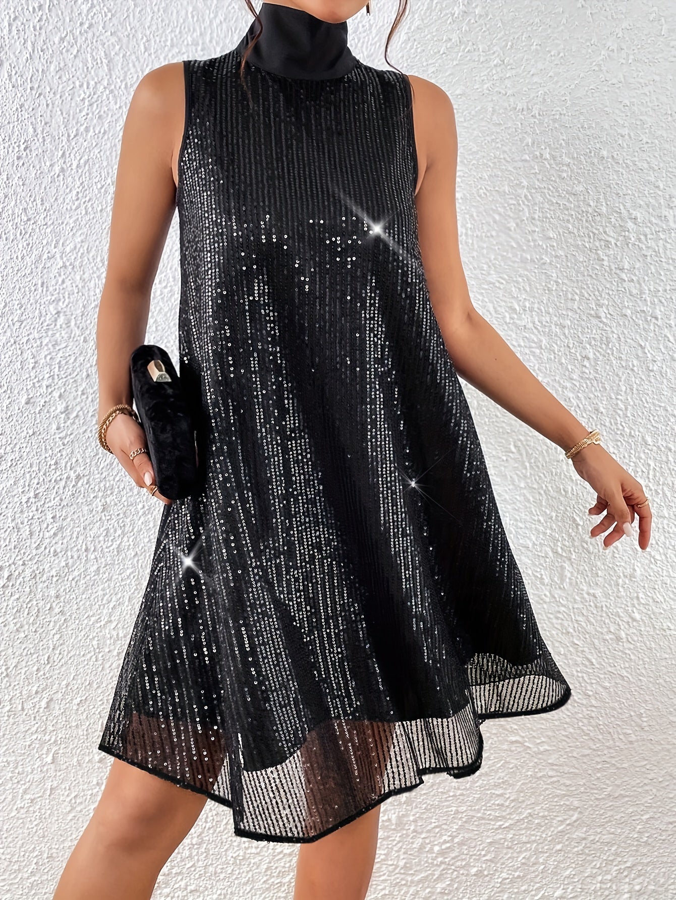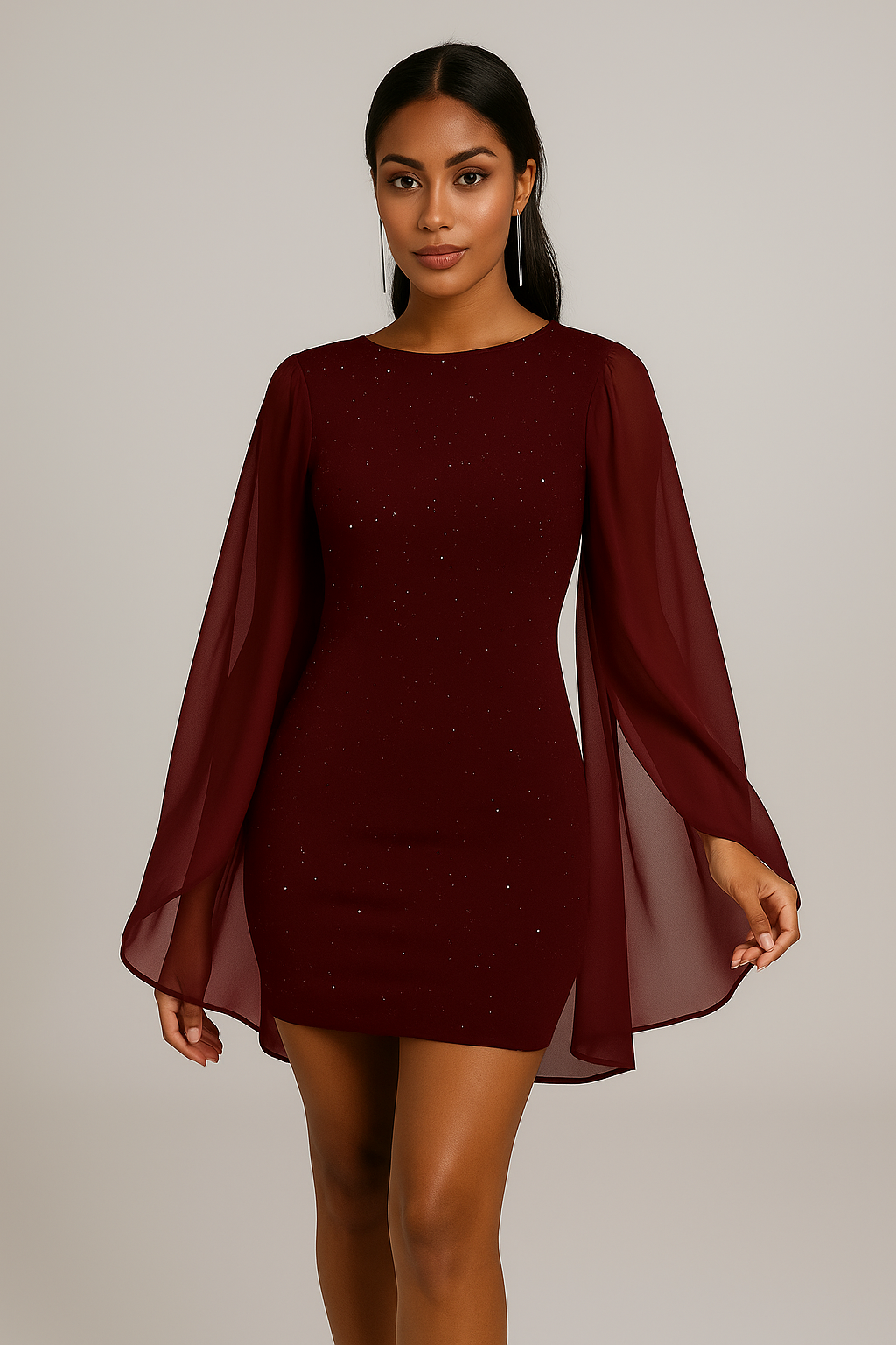 Mini robe sequins femme à manches longues – robe soirée paillettes