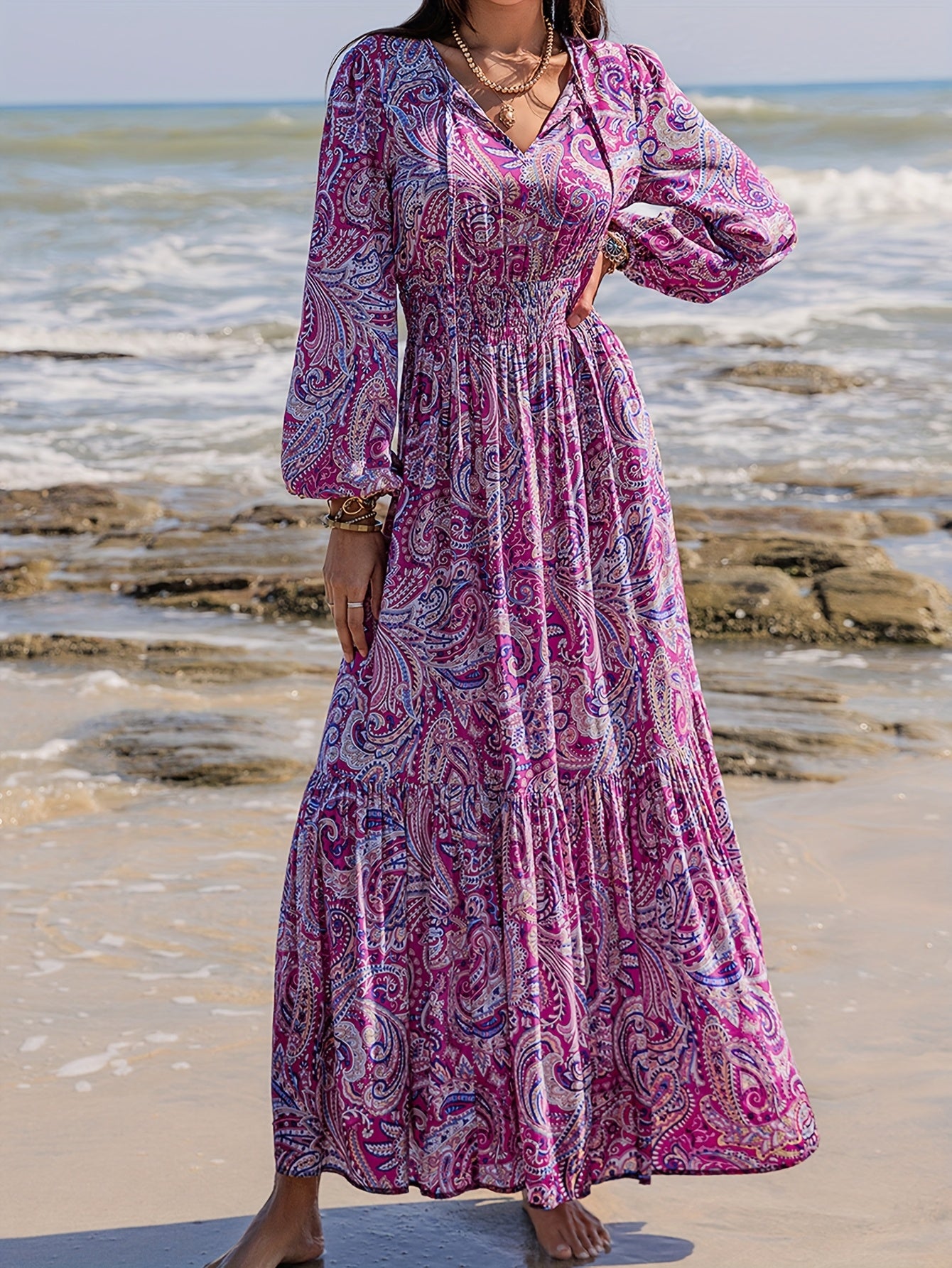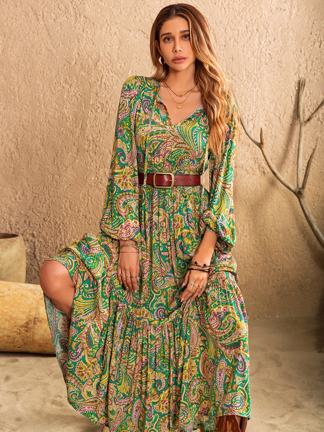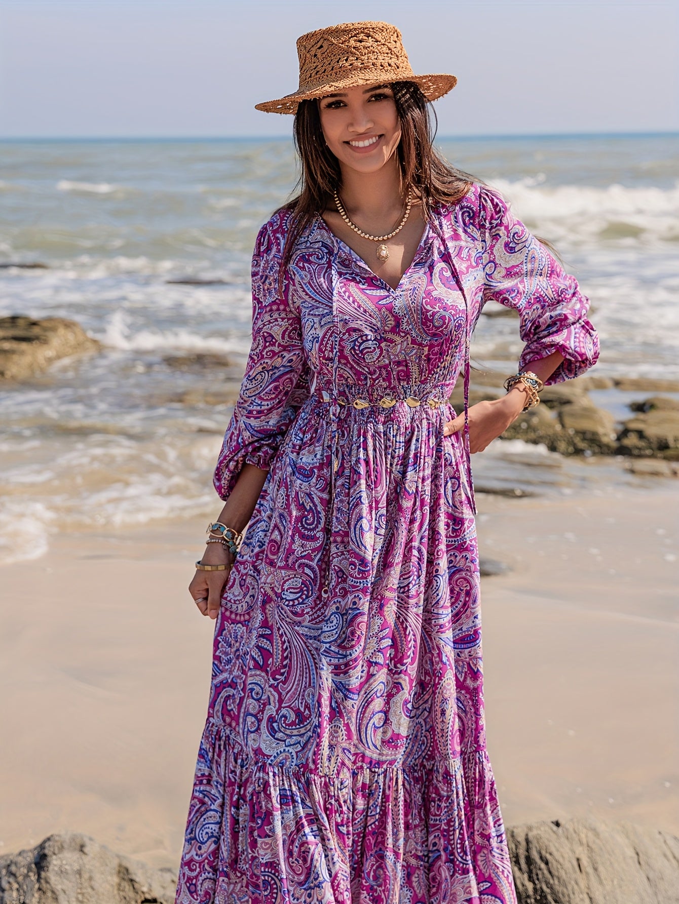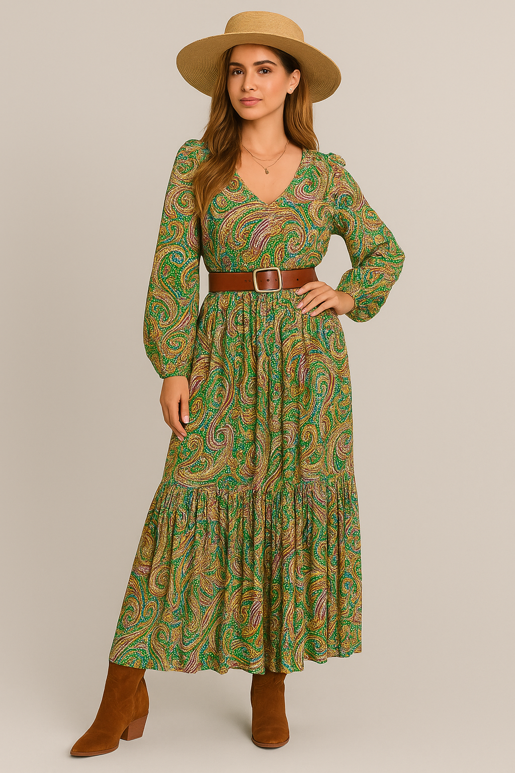 Robe longue bohème fluide femme – imprimé patchwork d’été