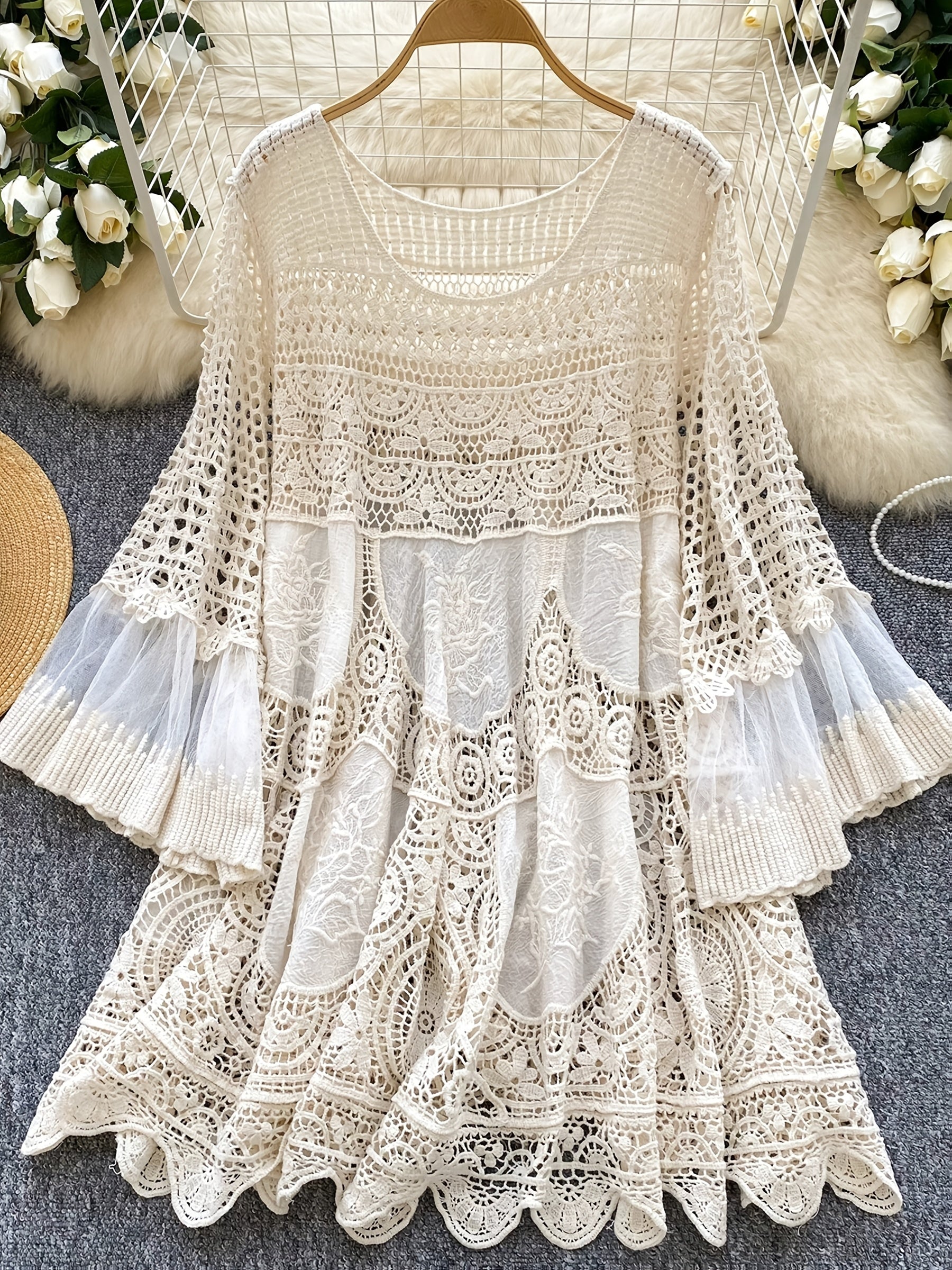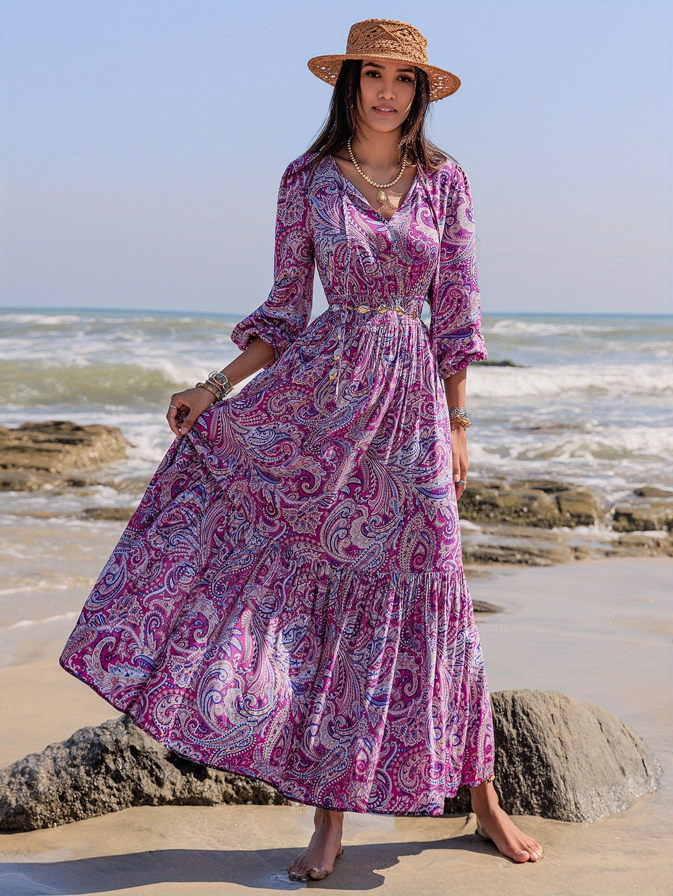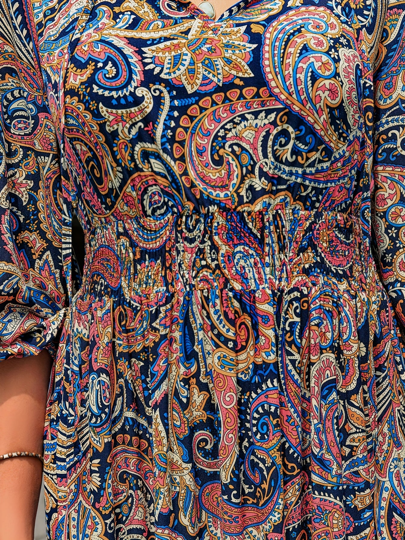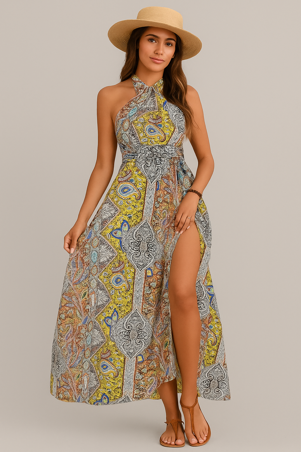 Robe longue bohème fluide femme – imprimé patchwork d’été