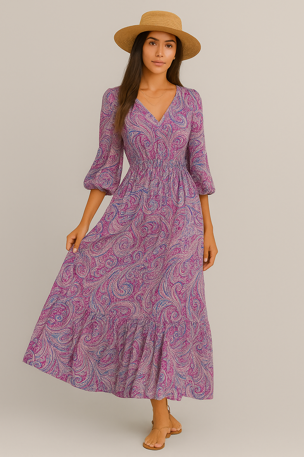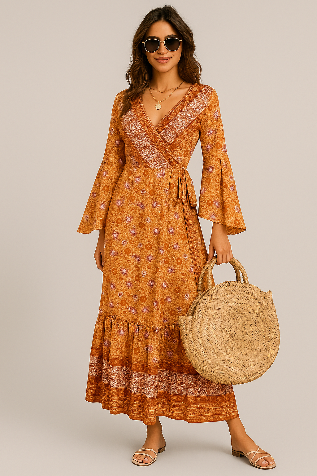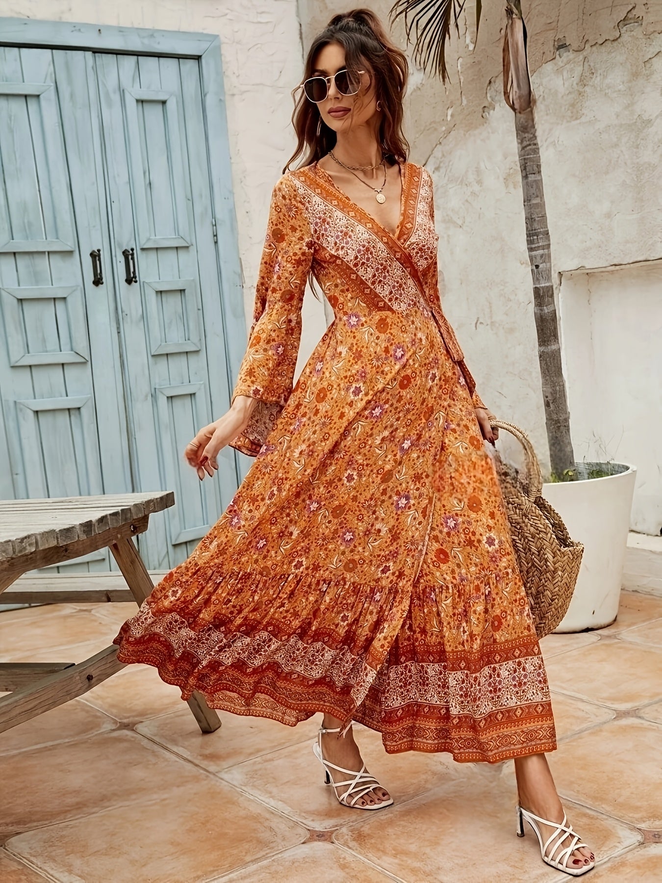 Robe bohème portefeuille longue à imprimé floral femme – chic et fluide