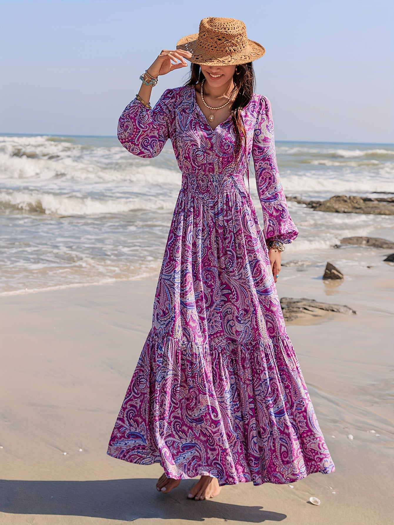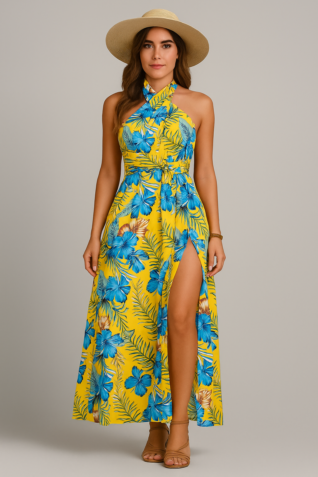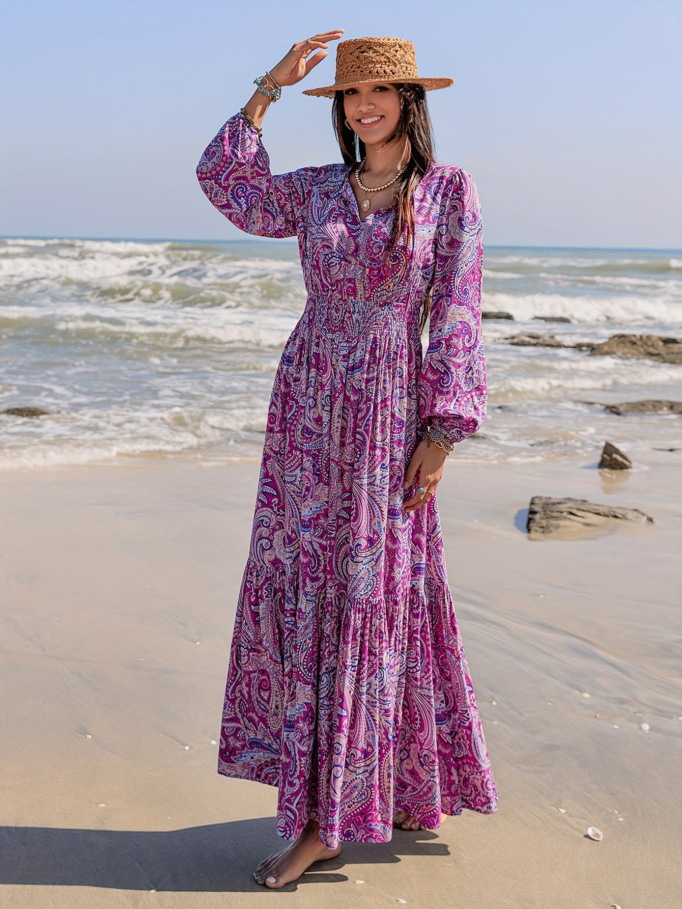 Robe bohème portefeuille longue à imprimé floral femme – chic et fluide