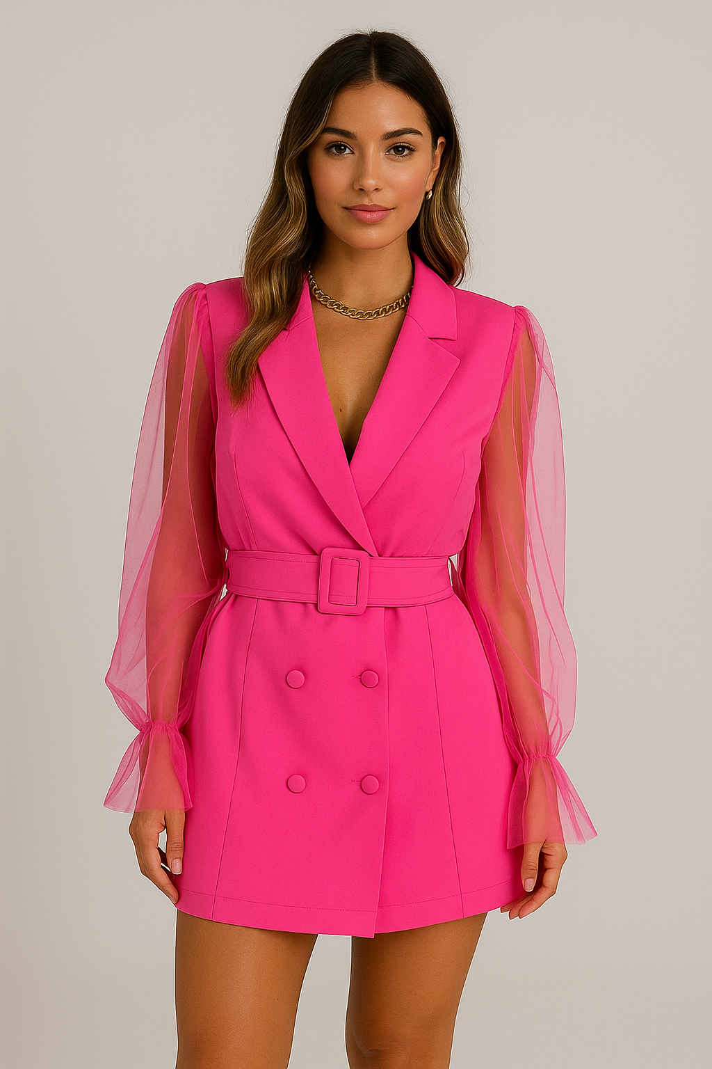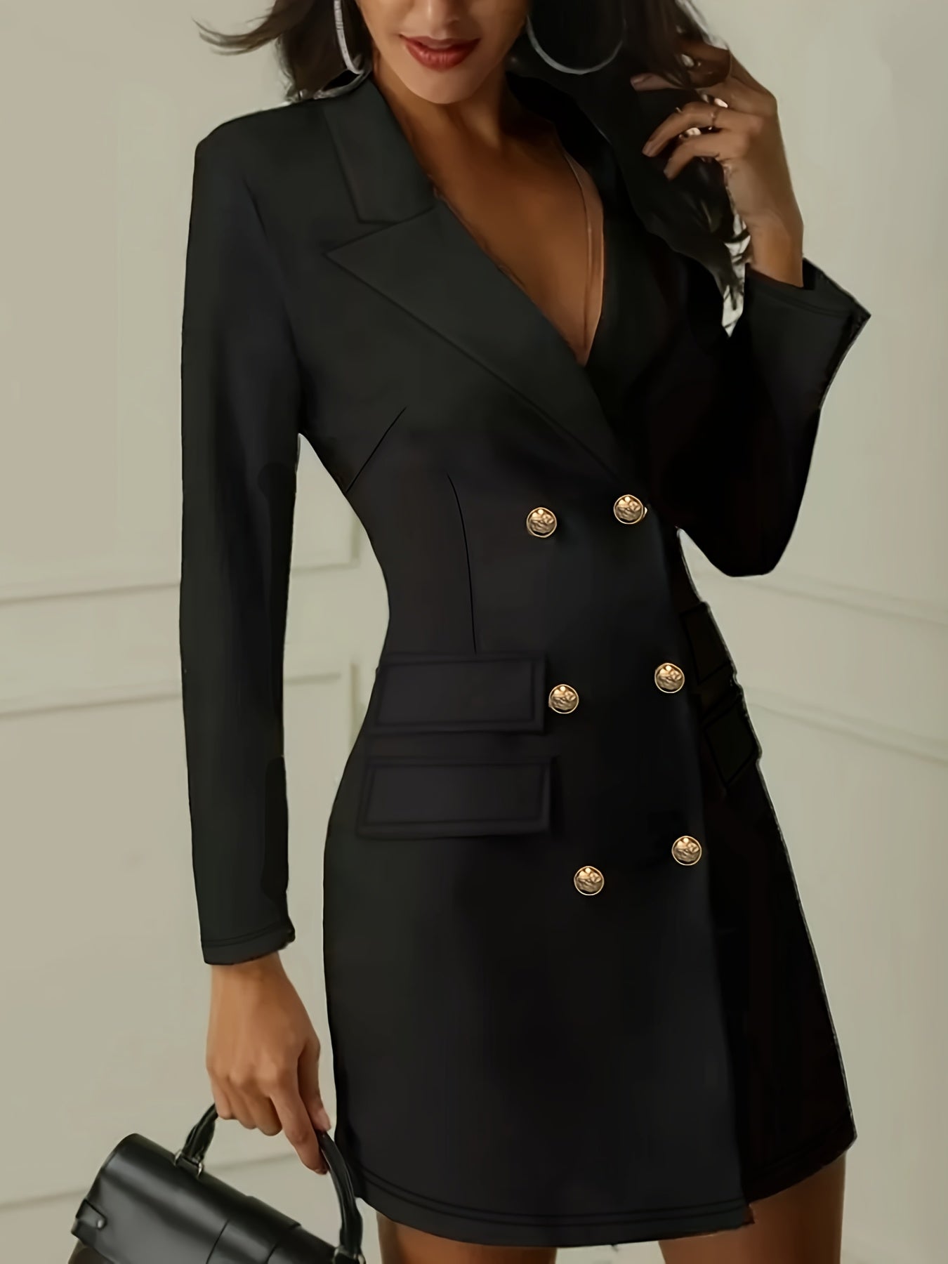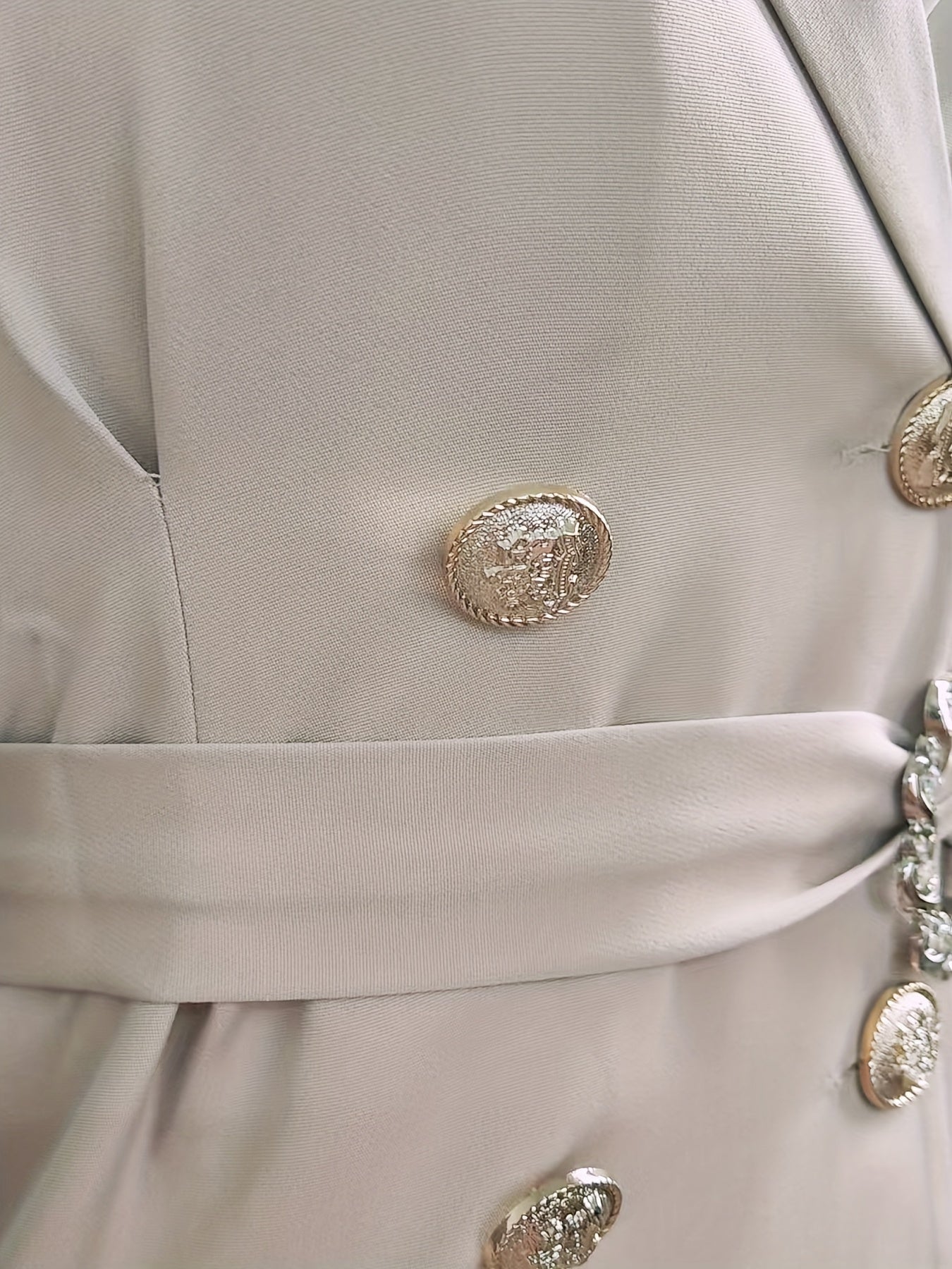 Robe blazer longue femme élégante avec fente et boutons dorés