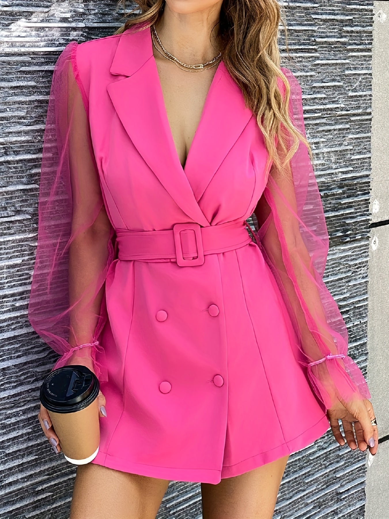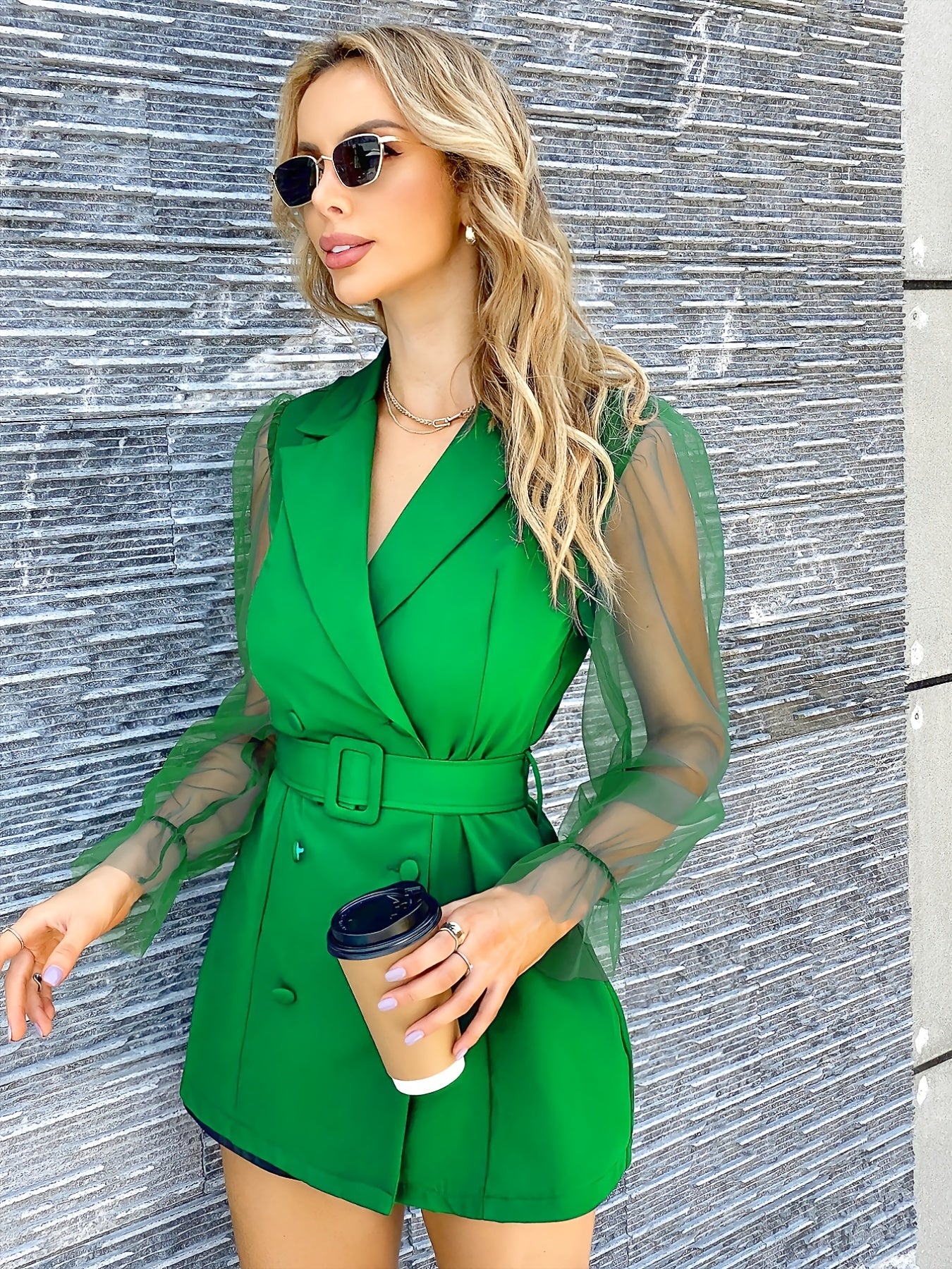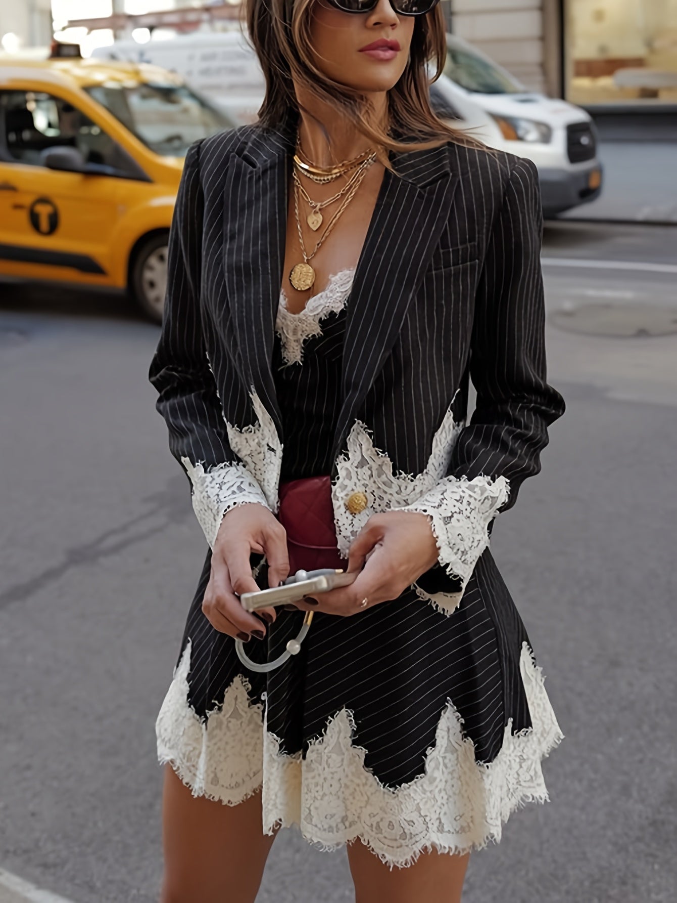 Robe blazer longue femme élégante avec fente et boutons dorés