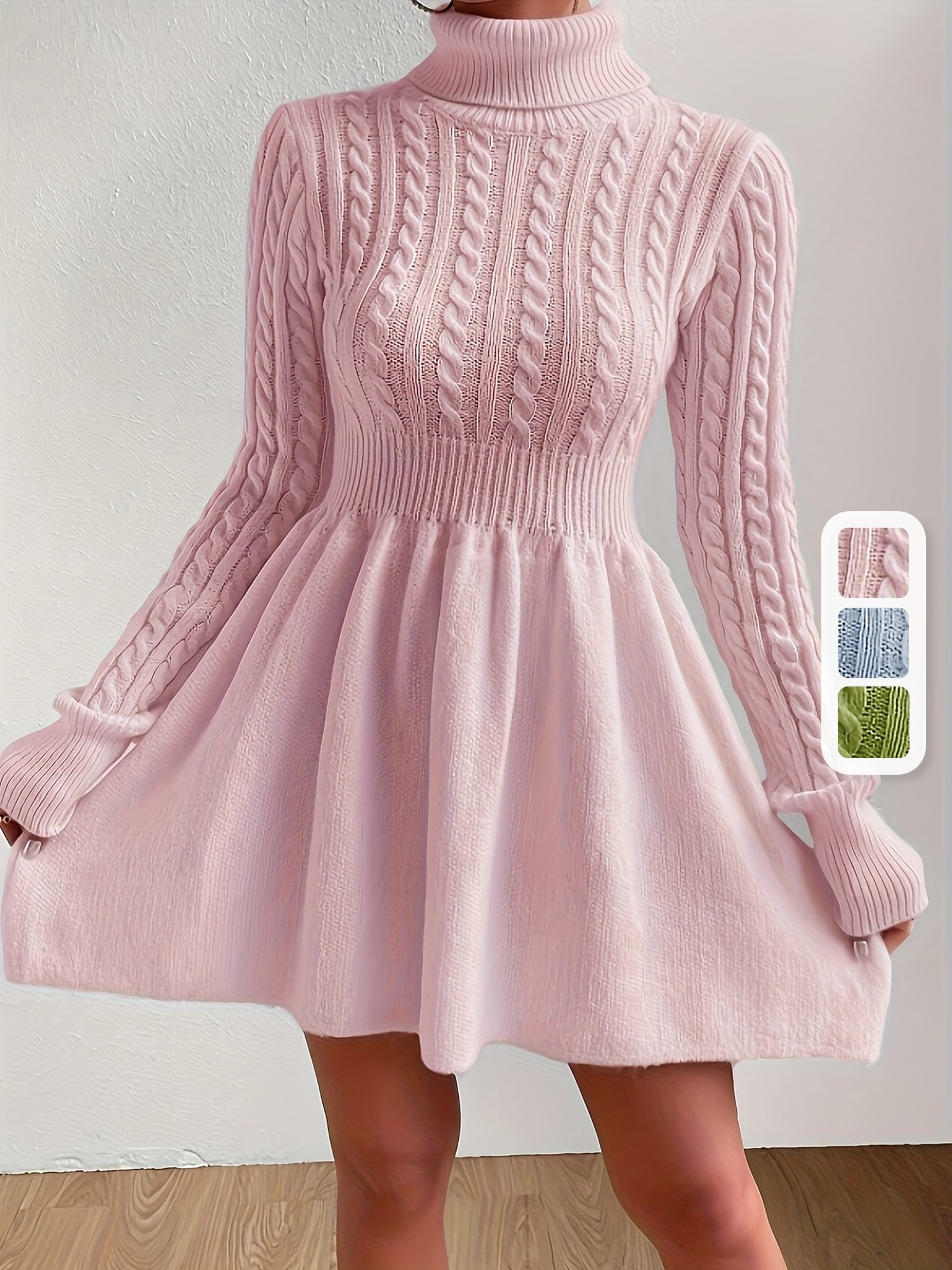 Robe pull hiver femme col roulé maille torsadée