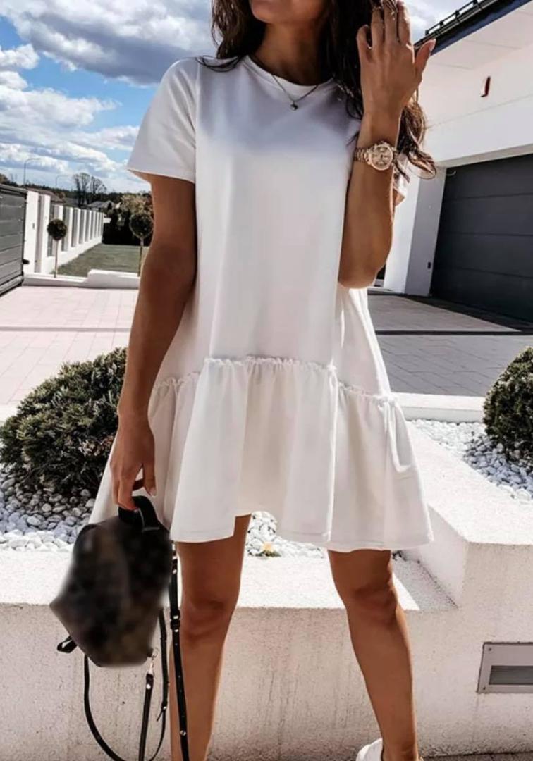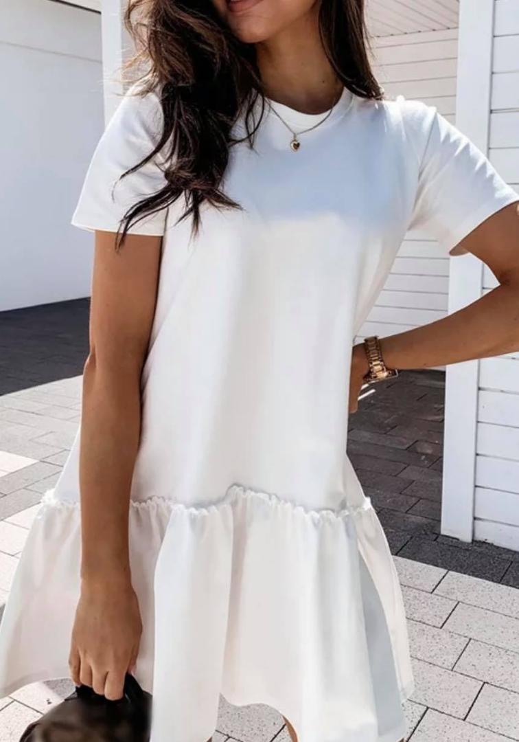 Avec un col rond, des manches courtes et une coupe canon, elle est confectionnée dans une matière fluide pour un confort optimal.