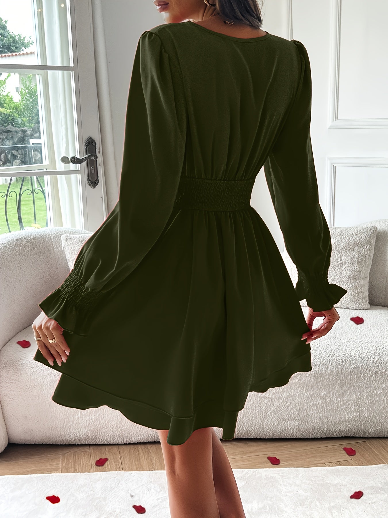 Cette robe portefeuille élégante manches longues fluide sublime la silhouette avec sa matière légère, sa taille cintrée et son décolleté croisé flatteur. Les manches longues froncées ajoutent une touche de charme, tandis que la jupe virevoltante offre un tombé aérien et structuré.